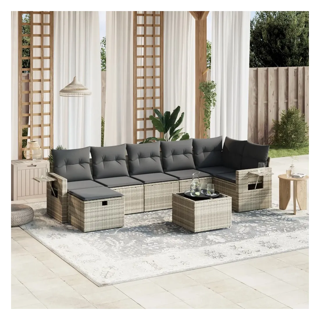 Cet ensemble de canapés de jardin est le complément parfait de votre arrière-cour, terrasse ou patio, offrant un espace confortable et accueillant pour discuter avec la famille et les amis ou simplement se détendre et profiter de l'extérieur. Matériau durable : la résine tressée, également connue sous le nom de poly rotin, est un matériau synthétique solide et nécessitant peu d'entretien qui ressemble au rotin naturel. Il est léger, facile à nettoyer et couramment utilisé pour les meubles d'extérieur en raison de sa durabilité et de ses propriétés de résistance aux intempéries.Dessus en verre : le dessus de la table d'extérieur est fabriqué en verre trempé solide et durable, ce qui le rend facile à nettoyer avec un chiffon humide et ajoute une touche d'élégance à votre espace extérieur.Housse amovible et lavable : ces coussins de siège sont dotés de housses amovibles pour un lavage et un entretien faciles.Cadre robuste et stable : le cadre en acier enduit de poudre assure la solidité et la stabilité du meuble de jardin pour une utilisation quotidienne à l'extérieur.Conception modulaire : cet ensemble de meubles d'extérieur a une conception modulaire, ce qui le rend complètement flexible et facile à déplacer, afin que vous puissiez créer un agencement de meubles d'extérieur personnalisé. Bon à savoir :Pour que vos meubles d'extérieur restent beaux, nous vous recommandons de les protéger avec une housse imperméable.