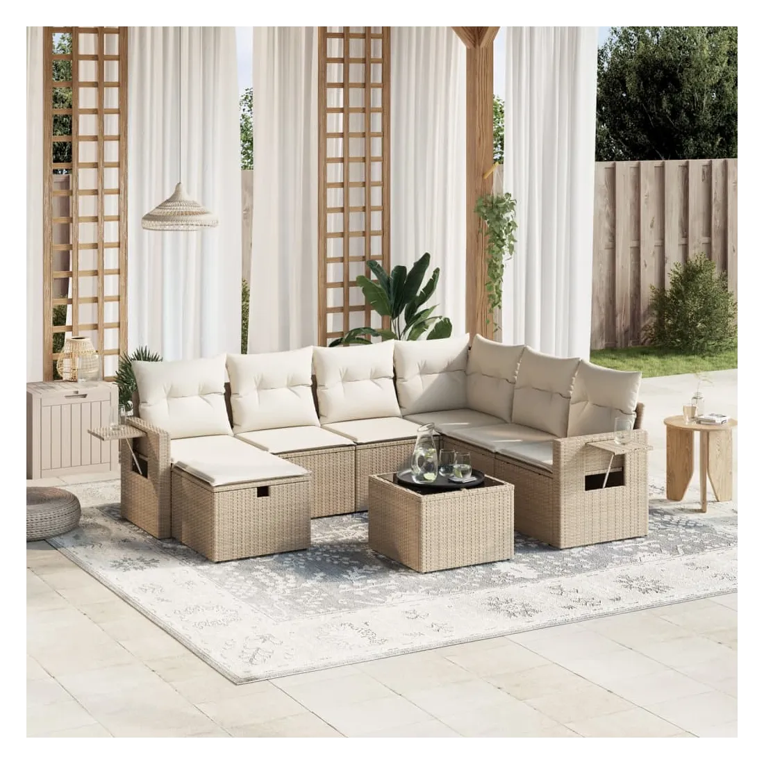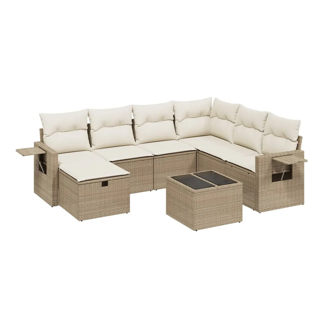 Salon de jardin avec coussins 8 pcs beige résine tressée