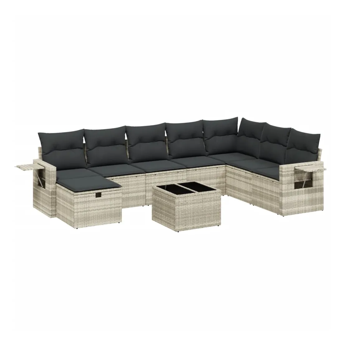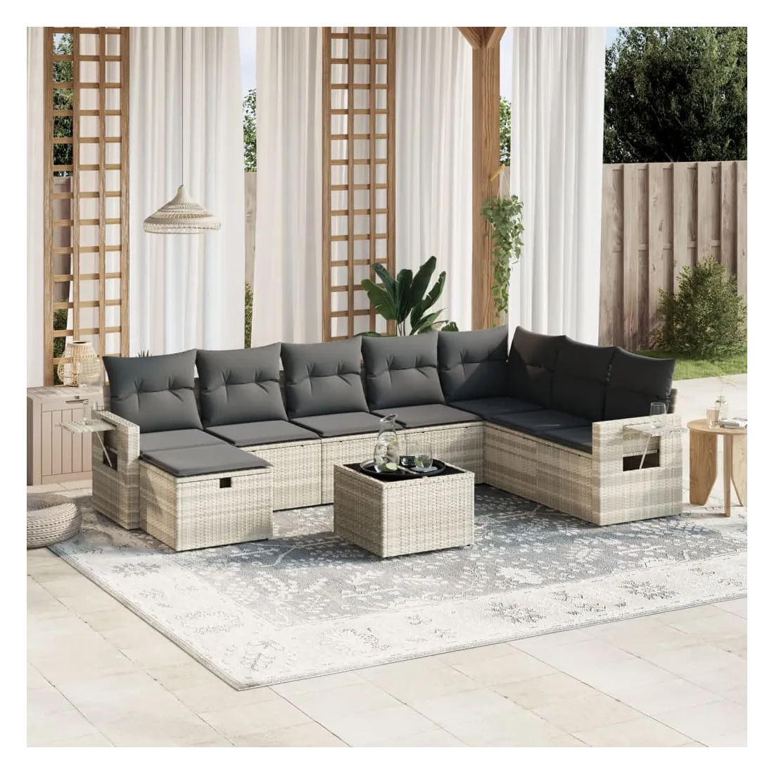 Cet ensemble de canapés de jardin est le complément parfait de votre arrière-cour, terrasse ou patio, offrant un espace confortable et accueillant pour discuter avec la famille et les amis ou simplement se détendre et profiter de l'extérieur. Matériau durable : la résine tressée, également connue sous le nom de poly rotin, est un matériau synthétique solide et nécessitant peu d'entretien qui ressemble au rotin naturel. Il est léger, facile à nettoyer et couramment utilisé pour les meubles d'extérieur en raison de sa durabilité et de ses propriétés de résistance aux intempéries.Dessus en verre : le dessus de la table d'extérieur est fabriqué en verre trempé solide et durable, ce qui le rend facile à nettoyer avec un chiffon humide et ajoute une touche d'élégance à votre espace extérieur.Housse amovible et lavable : ces coussins de siège sont dotés de housses amovibles pour un lavage et un entretien faciles.Cadre robuste et stable : le cadre en acier enduit de poudre assure la solidité et la stabilité du meuble de jardin pour une utilisation quotidienne à l'extérieur.Conception modulaire : cet ensemble de meubles d'extérieur a une conception modulaire, ce qui le rend complètement flexible et facile à déplacer, afin que vous puissiez créer un agencement de meubles d'extérieur personnalisé. Bon à savoir :Pour que vos meubles d'extérieur restent beaux, nous vous recommandons de les protéger avec une housse imperméable.