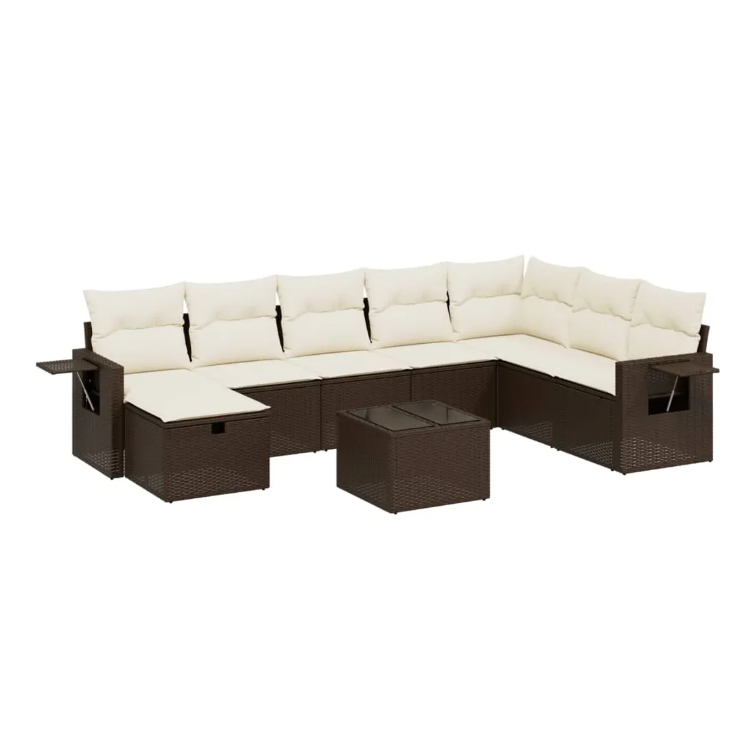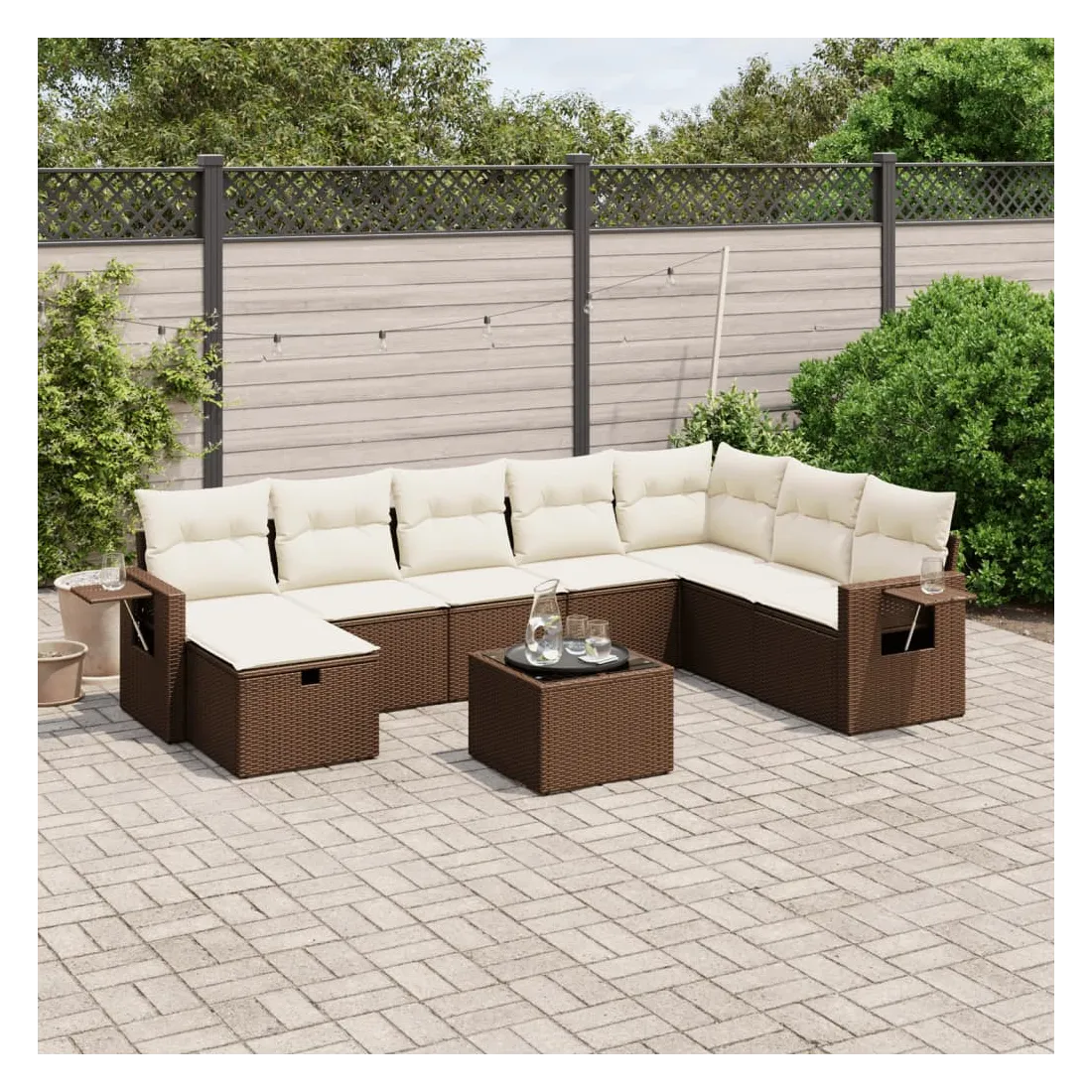 Cet ensemble de canapés de jardin est le complément parfait de votre arrière-cour, terrasse ou patio, offrant un espace confortable et accueillant pour discuter avec la famille et les amis ou simplement se détendre et profiter de l'extérieur. Matériau durable : la résine tressée, également connue sous le nom de poly rotin, est un matériau synthétique solide et nécessitant peu d'entretien qui ressemble au rotin naturel. Il est léger, facile à nettoyer et couramment utilisé pour les meubles d'extérieur en raison de sa durabilité et de ses propriétés de résistance aux intempéries.Dessus en verre : le dessus de la table d'extérieur est fabriqué en verre trempé solide et durable, ce qui le rend facile à nettoyer avec un chiffon humide et ajoute une touche d'élégance à votre espace extérieur.Housse amovible et lavable : ces coussins de siège sont dotés de housses amovibles pour un lavage et un entretien faciles.Cadre robuste et stable : le cadre en acier enduit de poudre assure la solidité et la stabilité du meuble de jardin pour une utilisation quotidienne à l'extérieur.Conception modulaire : cet ensemble de meubles d'extérieur a une conception modulaire, ce qui le rend complètement flexible et facile à déplacer, afin que vous puissiez créer un agencement de meubles d'extérieur personnalisé. Bon à savoir :Pour que vos meubles d'extérieur restent beaux, nous vous recommandons de les protéger avec une housse imperméable.