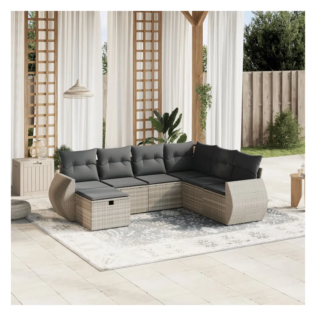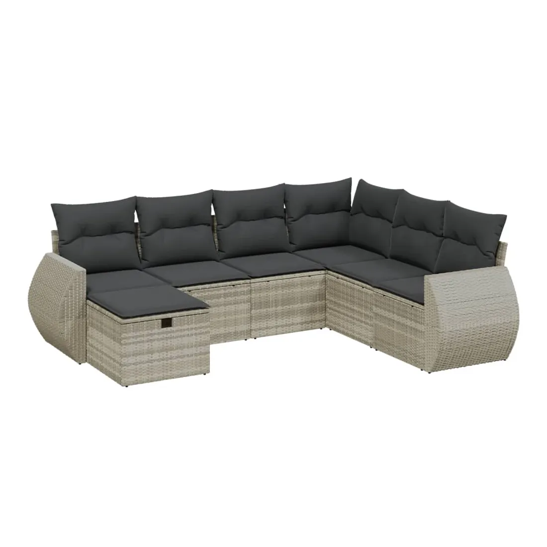Salon de jardin avec coussins 7 pcs gris clair résine tressée