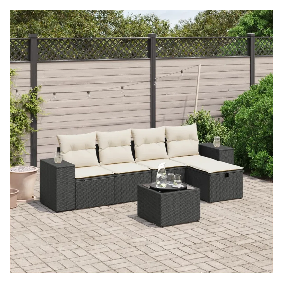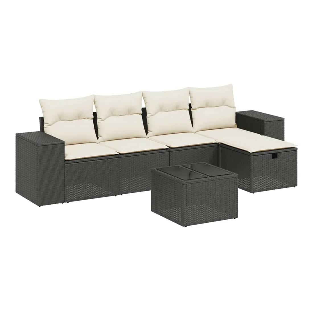 Cet ensemble de canapés de jardin est le complément parfait de votre arrière-cour, terrasse ou patio, offrant un espace confortable et accueillant pour discuter avec la famille et les amis ou simplement se détendre et profiter de l'extérieur. Matériau durable : la résine tressée, également connue sous le nom de poly rotin, est un matériau synthétique solide et nécessitant peu d'entretien qui ressemble au rotin naturel. Il est léger, facile à nettoyer et couramment utilisé pour les meubles d'extérieur en raison de sa durabilité et de ses propriétés de résistance aux intempéries.Dessus en verre : le dessus de la table d'extérieur est fabriqué en verre trempé solide et durable, ce qui le rend facile à nettoyer avec un chiffon humide et ajoute une touche d'élégance à votre espace extérieur.Housse amovible et lavable : ces coussins de siège sont dotés de housses amovibles pour un lavage et un entretien faciles.Cadre robuste et stable : le cadre en acier enduit de poudre assure la solidité et la stabilité du meuble de jardin pour une utilisation quotidienne à l'extérieur.Conception modulaire : cet ensemble de meubles d'extérieur a une conception modulaire, ce qui le rend complètement flexible et facile à déplacer, afin que vous puissiez créer un agencement de meubles d'extérieur personnalisé. Bon à savoir :Pour que vos meubles d'extérieur restent beaux, nous vous recommandons de les protéger avec une housse imperméable.