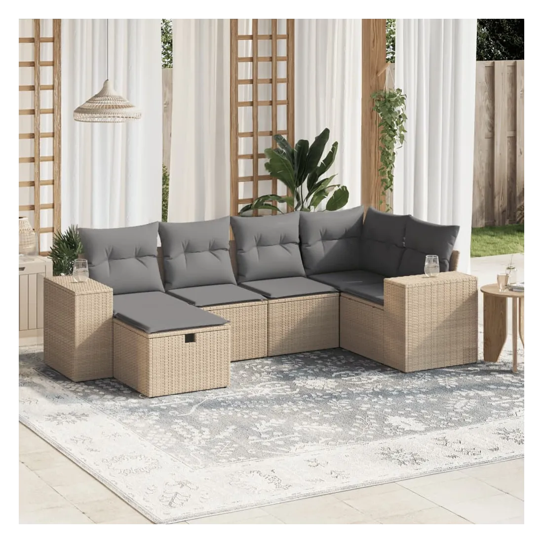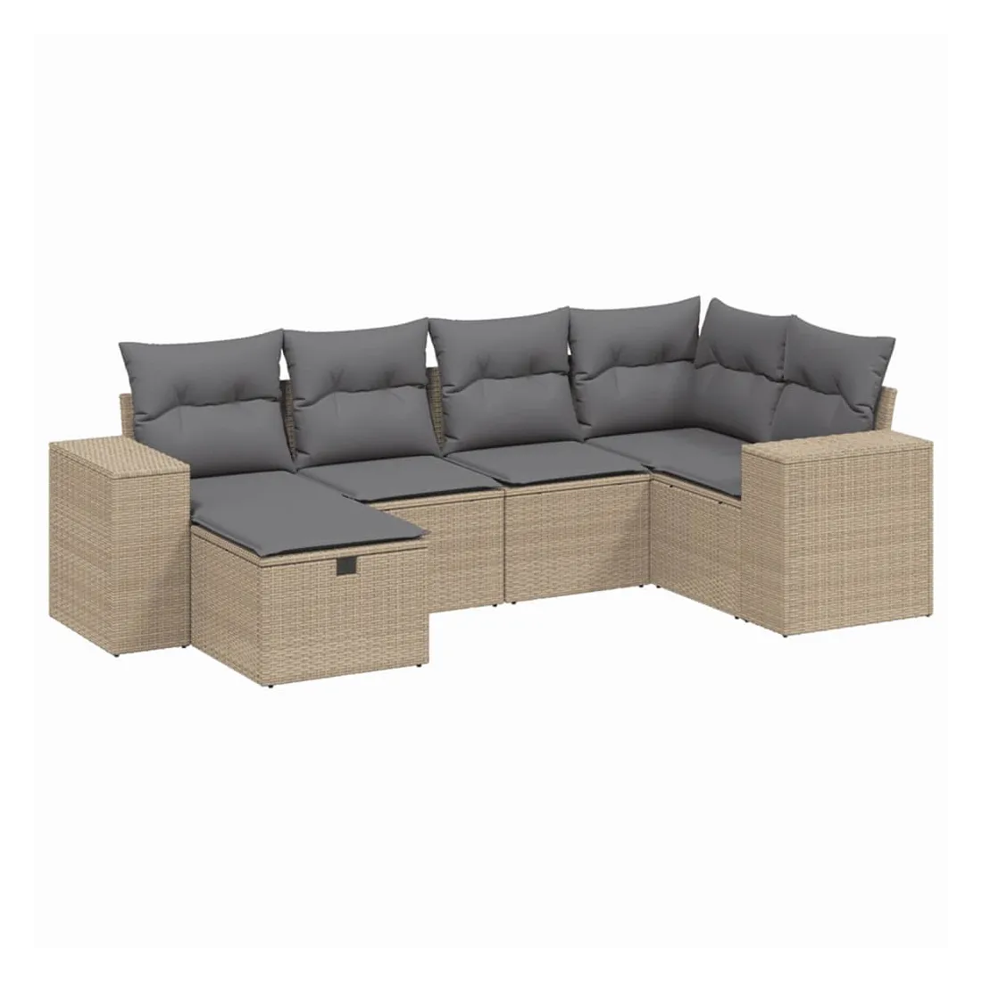 Cet ensemble de canapés de jardin est le complément parfait de votre arrière-cour, terrasse ou patio, offrant un espace confortable et accueillant pour discuter avec la famille et les amis ou simplement se détendre et profiter de l'extérieur. Matériau durable : la résine tressée, également connue sous le nom de poly rotin, est un matériau synthétique solide et nécessitant peu d'entretien qui ressemble au rotin naturel. Il est léger, facile à nettoyer et couramment utilisé pour les meubles d'extérieur en raison de sa durabilité et de ses propriétés de résistance aux intempéries.Expérience d'assise confortable : ce mobilier d'extérieur, doté de coussins épais, offre une expérience d'assise confortable.Housse amovible et lavable : ces coussins de siège sont dotés de housses amovibles pour un lavage et un entretien faciles.Cadre robuste et stable : le cadre en acier enduit de poudre assure la solidité et la stabilité du meuble de jardin pour une utilisation quotidienne à l'extérieur.Conception modulaire : cet ensemble de meubles d'extérieur a une conception modulaire, ce qui le rend complètement flexible et facile à déplacer, afin que vous puissiez créer un agencement de meubles d'extérieur personnalisé. Bon à savoir :Pour que vos meubles d'extérieur restent beaux, nous vous recommandons de les protéger avec une housse imperméable.