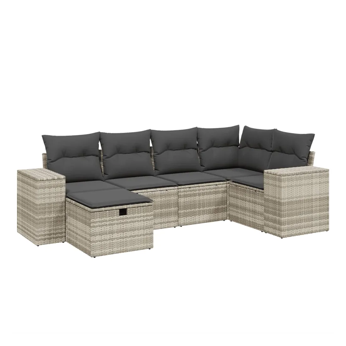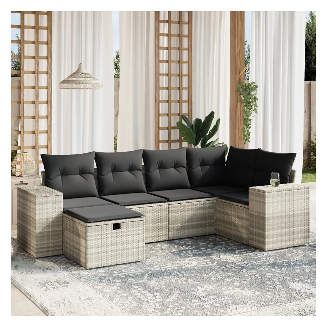 Cet ensemble de canapés de jardin est le complément parfait de votre arrière-cour, terrasse ou patio, offrant un espace confortable et accueillant pour discuter avec la famille et les amis ou simplement se détendre et profiter de l'extérieur. Matériau durable : la résine tressée, également connue sous le nom de poly rotin, est un matériau synthétique solide et nécessitant peu d'entretien qui ressemble au rotin naturel. Il est léger, facile à nettoyer et couramment utilisé pour les meubles d'extérieur en raison de sa durabilité et de ses propriétés de résistance aux intempéries.Expérience d'assise confortable : ce mobilier d'extérieur, doté de coussins épais, offre une expérience d'assise confortable.Housse amovible et lavable : ces coussins de siège sont dotés de housses amovibles pour un lavage et un entretien faciles.Cadre robuste et stable : le cadre en acier enduit de poudre assure la solidité et la stabilité du meuble de jardin pour une utilisation quotidienne à l'extérieur.Conception modulaire : cet ensemble de meubles d'extérieur a une conception modulaire, ce qui le rend complètement flexible et facile à déplacer, afin que vous puissiez créer un agencement de meubles d'extérieur personnalisé. Bon à savoir :Pour que vos meubles d'extérieur restent beaux, nous vous recommandons de les protéger avec une housse imperméable.