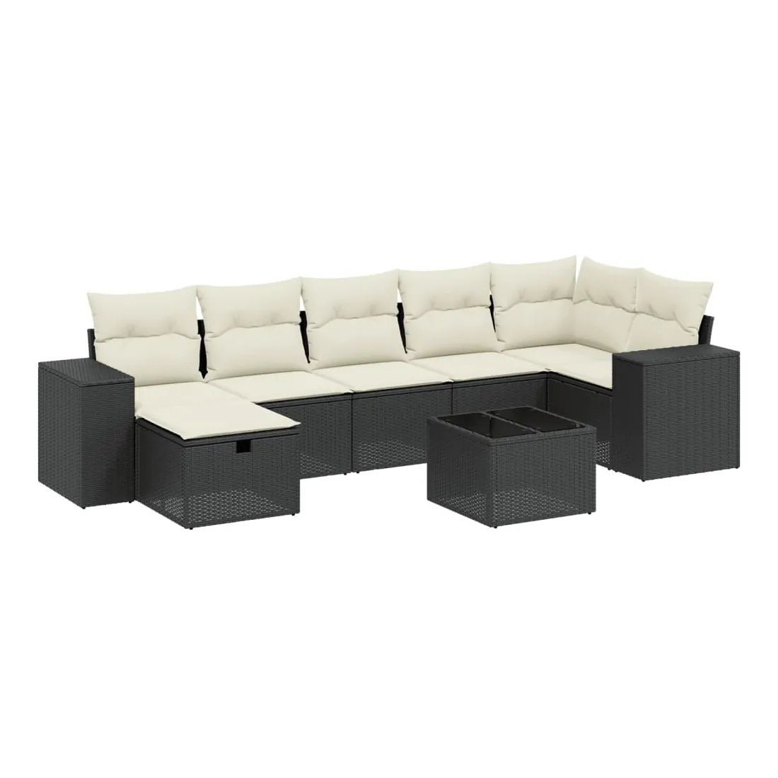 Salon de jardin 8 pcs avec coussins noir résine tressée