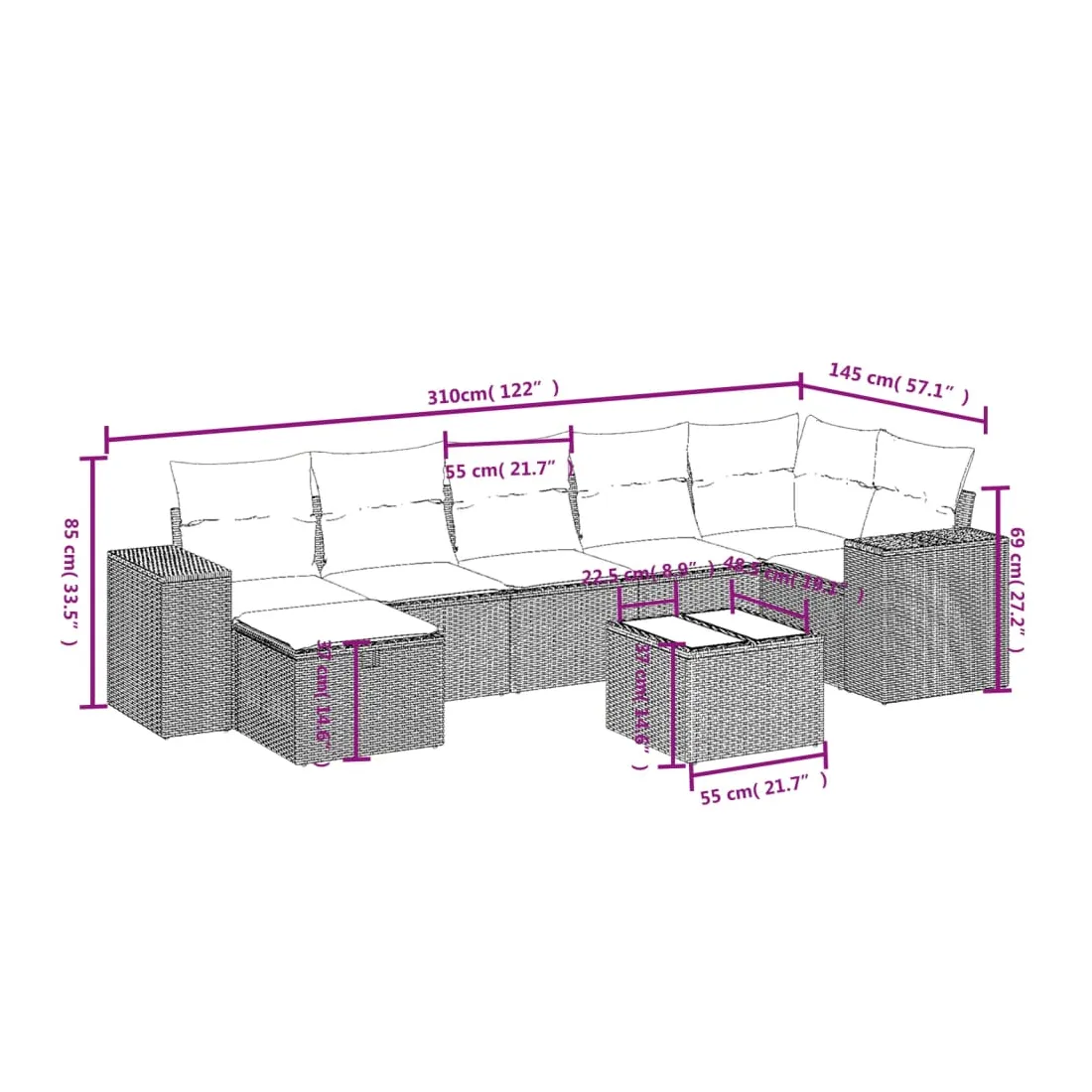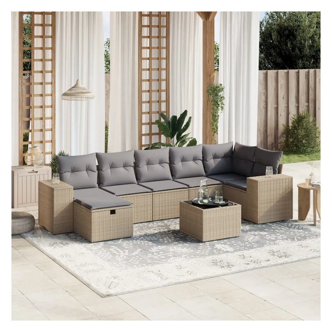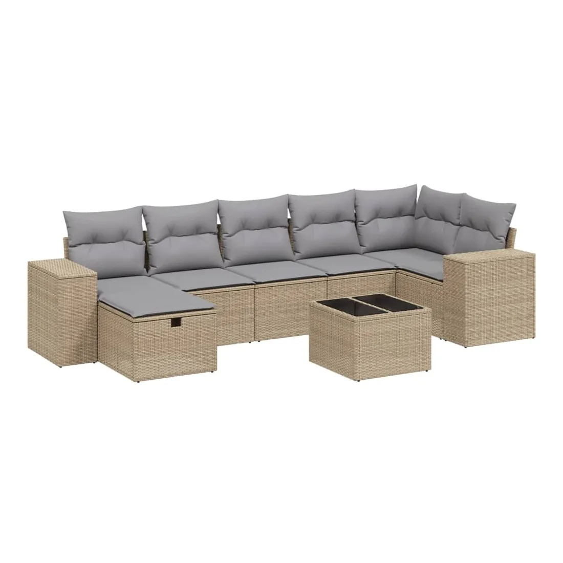 Salon de jardin avec coussins 8pcs mélange beige résine tressée