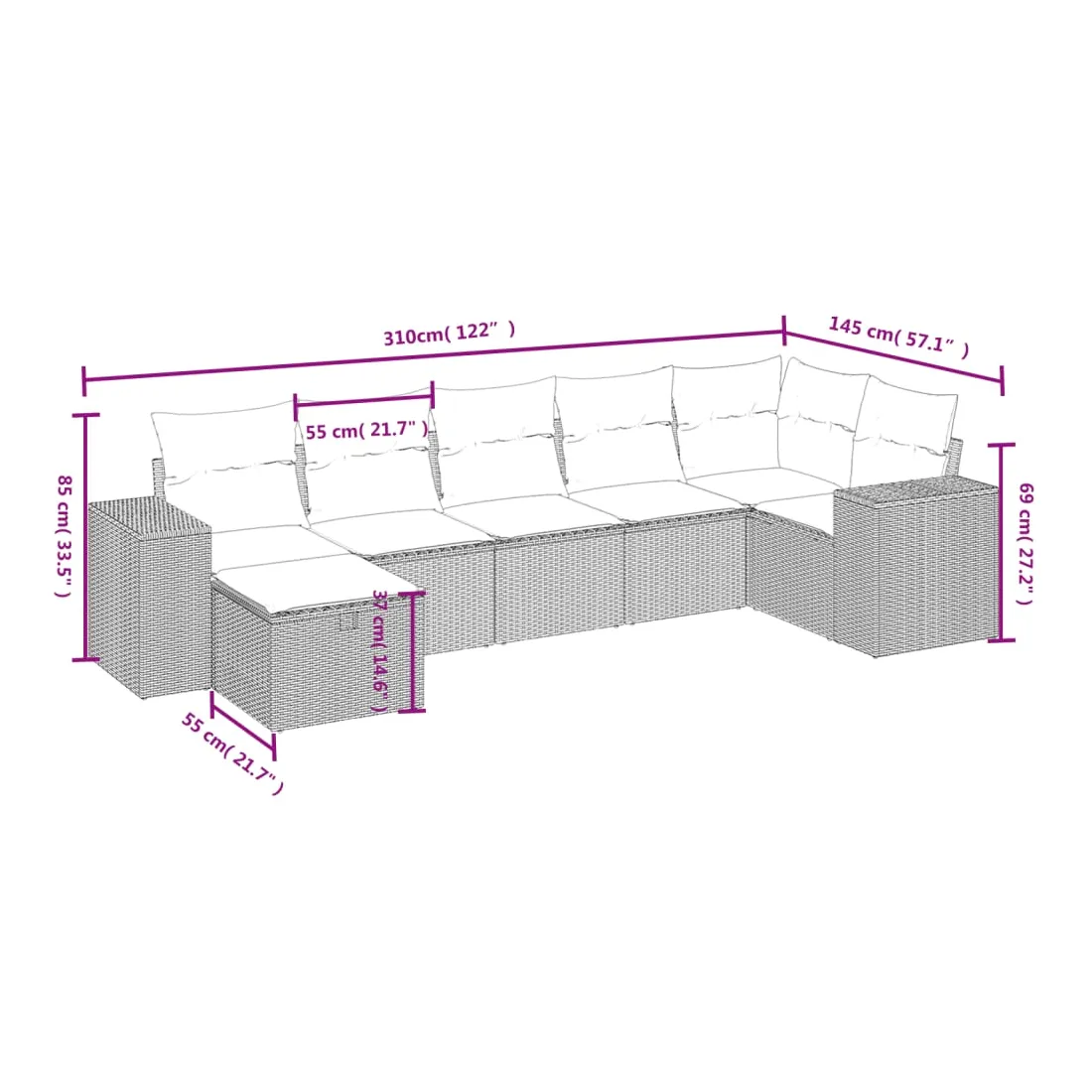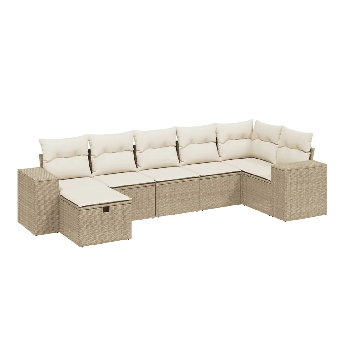 Salon de jardin avec coussins 7 pcs beige résine tressée