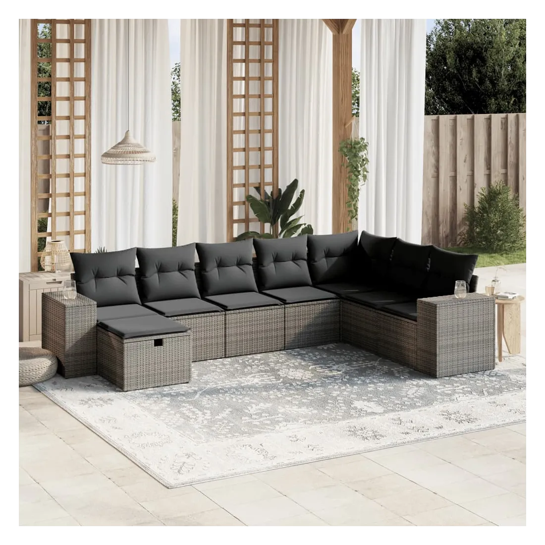 Cet ensemble de canapés de jardin est le complément parfait de votre arrière-cour, terrasse ou patio, offrant un espace confortable et accueillant pour discuter avec la famille et les amis ou simplement se détendre et profiter de l'extérieur. Matériau durable : la résine tressée, également connue sous le nom de poly rotin, est un matériau synthétique solide et nécessitant peu d'entretien qui ressemble au rotin naturel. Il est léger, facile à nettoyer et couramment utilisé pour les meubles d'extérieur en raison de sa durabilité et de ses propriétés de résistance aux intempéries.Expérience d'assise confortable : ce mobilier d'extérieur, doté de coussins épais, offre une expérience d'assise confortable.Housse amovible et lavable : ces coussins de siège sont dotés de housses amovibles pour un lavage et un entretien faciles.Cadre robuste et stable : le cadre en acier enduit de poudre assure la solidité et la stabilité du meuble de jardin pour une utilisation quotidienne à l'extérieur.Conception modulaire : cet ensemble de meubles d'extérieur a une conception modulaire, ce qui le rend complètement flexible et facile à déplacer, afin que vous puissiez créer un agencement de meubles d'extérieur personnalisé. Bon à savoir :Pour que vos meubles d'extérieur restent beaux, nous vous recommandons de les protéger avec une housse imperméable.