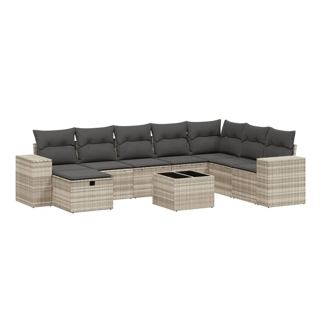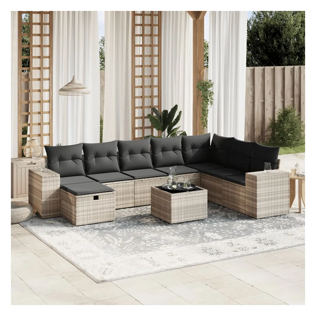Cet ensemble de canapés de jardin est le complément parfait de votre arrière-cour, terrasse ou patio, offrant un espace confortable et accueillant pour discuter avec la famille et les amis ou simplement se détendre et profiter de l'extérieur. Matériau durable : la résine tressée, également connue sous le nom de poly rotin, est un matériau synthétique solide et nécessitant peu d'entretien qui ressemble au rotin naturel. Il est léger, facile à nettoyer et couramment utilisé pour les meubles d'extérieur en raison de sa durabilité et de ses propriétés de résistance aux intempéries.Dessus en verre : le dessus de la table d'extérieur est fabriqué en verre trempé solide et durable, ce qui le rend facile à nettoyer avec un chiffon humide et ajoute une touche d'élégance à votre espace extérieur.Housse amovible et lavable : ces coussins de siège sont dotés de housses amovibles pour un lavage et un entretien faciles.Cadre robuste et stable : le cadre en acier enduit de poudre assure la solidité et la stabilité du meuble de jardin pour une utilisation quotidienne à l'extérieur.Conception modulaire : cet ensemble de meubles d'extérieur a une conception modulaire, ce qui le rend complètement flexible et facile à déplacer, afin que vous puissiez créer un agencement de meubles d'extérieur personnalisé. Bon à savoir :Pour que vos meubles d'extérieur restent beaux, nous vous recommandons de les protéger avec une housse imperméable.