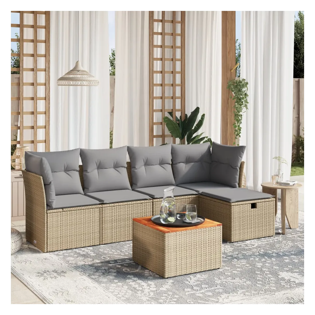 Cet ensemble de canapés de jardin est le complément parfait de votre arrière-cour, terrasse ou patio, offrant un espace confortable et accueillant pour discuter avec la famille et les amis ou simplement se détendre et profiter de l'extérieur. Matériau durable : la résine tressée, également connue sous le nom de poly rotin, est un matériau synthétique solide et nécessitant peu d'entretien qui ressemble au rotin naturel. Il est léger, facile à nettoyer et couramment utilisé pour les meubles d'extérieur en raison de sa durabilité et de ses propriétés de résistance aux intempéries.Dessus stable et facile à nettoyer : cette table de jardin a un dessus en bois d'acacia robuste, durable et facile à nettoyer avec un chiffon humide.Housse amovible et lavable : ces coussins de siège sont dotés de housses amovibles pour un lavage et un entretien faciles.Cadre robuste et stable : le cadre en acier enduit de poudre assure la solidité et la stabilité du meuble de jardin pour une utilisation quotidienne à l'extérieur.Conception modulaire : cet ensemble de meubles d'extérieur a une conception modulaire, ce qui le rend complètement flexible et facile à déplacer, afin que vous puissiez créer un agencement de meubles d'extérieur personnalisé. Bon à savoir :Pour que vos meubles d'extérieur restent beaux, nous vous recommandons de les protéger avec une housse imperméable.