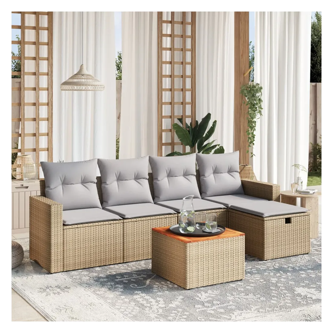 Cet ensemble de canapés de jardin est le complément parfait de votre arrière-cour, terrasse ou patio, offrant un espace confortable et accueillant pour discuter avec la famille et les amis ou simplement se détendre et profiter de l'extérieur. Matériau durable : la résine tressée, également connue sous le nom de poly rotin, est un matériau synthétique solide et nécessitant peu d'entretien qui ressemble au rotin naturel. Il est léger, facile à nettoyer et couramment utilisé pour les meubles d'extérieur en raison de sa durabilité et de ses propriétés de résistance aux intempéries.Dessus stable et facile à nettoyer : cette table de jardin a un dessus en bois d'acacia robuste, durable et facile à nettoyer avec un chiffon humide.Housse amovible et lavable : ces coussins de siège sont dotés de housses amovibles pour un lavage et un entretien faciles.Cadre robuste et stable : le cadre en acier enduit de poudre assure la solidité et la stabilité du meuble de jardin pour une utilisation quotidienne à l'extérieur.Conception modulaire : cet ensemble de meubles d'extérieur a une conception modulaire, ce qui le rend complètement flexible et facile à déplacer, afin que vous puissiez créer un agencement de meubles d'extérieur personnalisé. Bon à savoir :Pour que vos meubles d'extérieur restent beaux, nous vous recommandons de les protéger avec une housse imperméable.