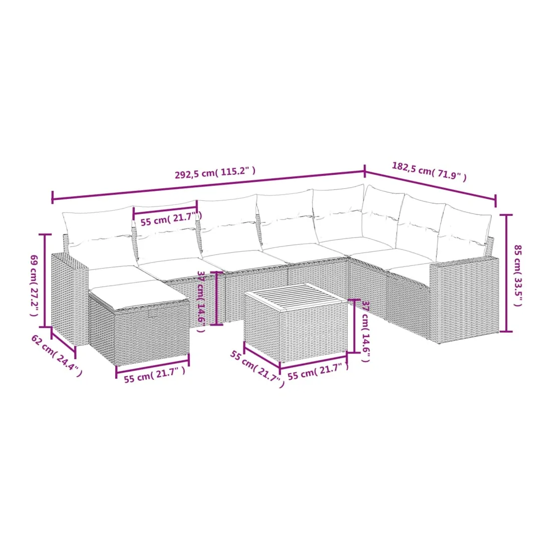 - Dimensions : 55 x 55 x 37 cm (L x l x H)
