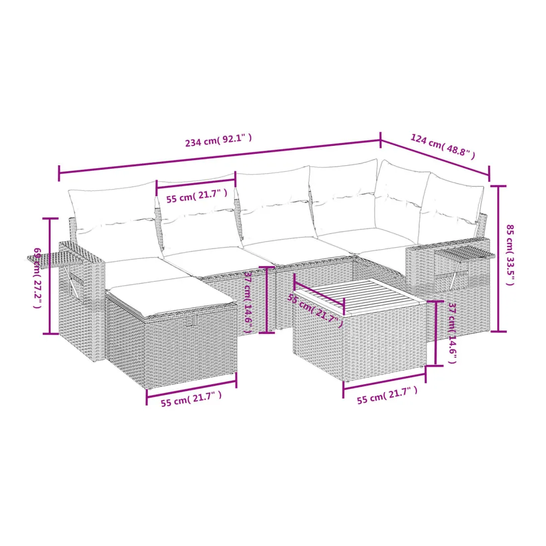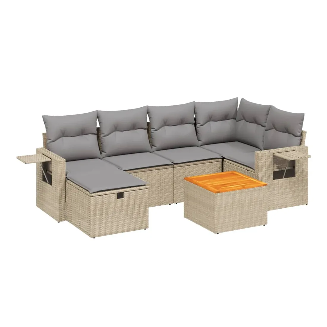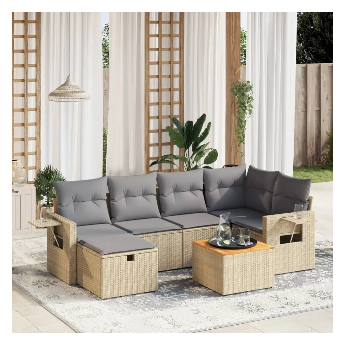 Cet ensemble de canapés de jardin est le complément parfait de votre arrière-cour, terrasse ou patio, offrant un espace confortable et accueillant pour discuter avec la famille et les amis ou simplement se détendre et profiter de l'extérieur. Matériau durable : la résine tressée, également connue sous le nom de poly rotin, est un matériau synthétique solide et nécessitant peu d'entretien qui ressemble au rotin naturel. Il est léger, facile à nettoyer et couramment utilisé pour les meubles d'extérieur en raison de sa durabilité et de ses propriétés de résistance aux intempéries.Dessus stable et facile à nettoyer : cette table de jardin a un dessus en bois d'acacia robuste, durable et facile à nettoyer avec un chiffon humide.Housse amovible et lavable : ces coussins de siège sont dotés de housses amovibles pour un lavage et un entretien faciles.Cadre robuste et stable : le cadre en acier enduit de poudre assure la solidité et la stabilité du meuble de jardin pour une utilisation quotidienne à l'extérieur.Conception modulaire : cet ensemble de meubles d'extérieur a une conception modulaire, ce qui le rend complètement flexible et facile à déplacer, afin que vous puissiez créer un agencement de meubles d'extérieur personnalisé. Bon à savoir :Pour que vos meubles d'extérieur restent beaux, nous vous recommandons de les protéger avec une housse imperméable.