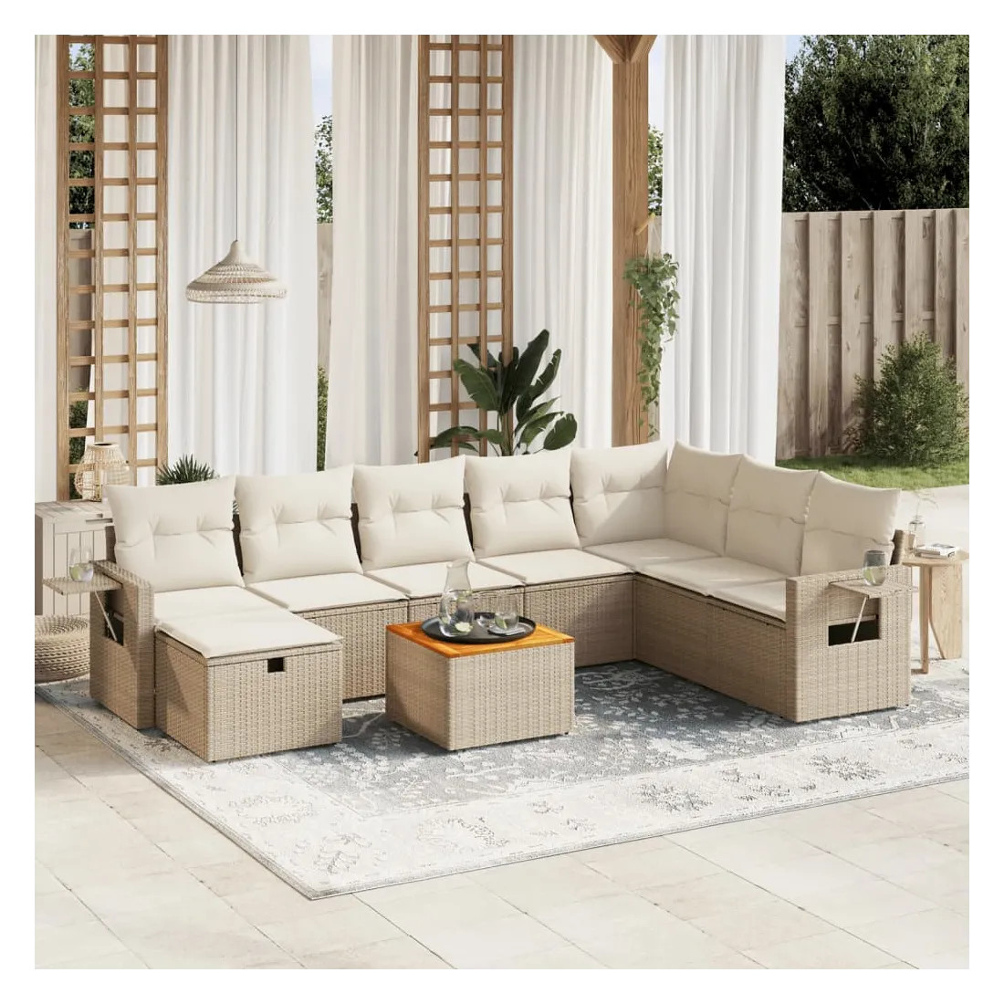 Cet ensemble de canapés de jardin est le complément parfait de votre arrière-cour, terrasse ou patio, offrant un espace confortable et accueillant pour discuter avec la famille et les amis ou simplement se détendre et profiter de l'extérieur. Matériau durable : la résine tressée, également connue sous le nom de poly rotin, est un matériau synthétique solide et nécessitant peu d'entretien qui ressemble au rotin naturel. Il est léger, facile à nettoyer et couramment utilisé pour les meubles d'extérieur en raison de sa durabilité et de ses propriétés de résistance aux intempéries.Dessus stable et facile à nettoyer : cette table de jardin a un dessus en bois d'acacia robuste, durable et facile à nettoyer avec un chiffon humide.Housse amovible et lavable : ces coussins de siège sont dotés de housses amovibles pour un lavage et un entretien faciles.Cadre robuste et stable : le cadre en acier enduit de poudre assure la solidité et la stabilité du meuble de jardin pour une utilisation quotidienne à l'extérieur.Conception modulaire : cet ensemble de meubles d'extérieur a une conception modulaire, ce qui le rend complètement flexible et facile à déplacer, afin que vous puissiez créer un agencement de meubles d'extérieur personnalisé. Bon à savoir :Pour que vos meubles d'extérieur restent beaux, nous vous recommandons de les protéger avec une housse imperméable.