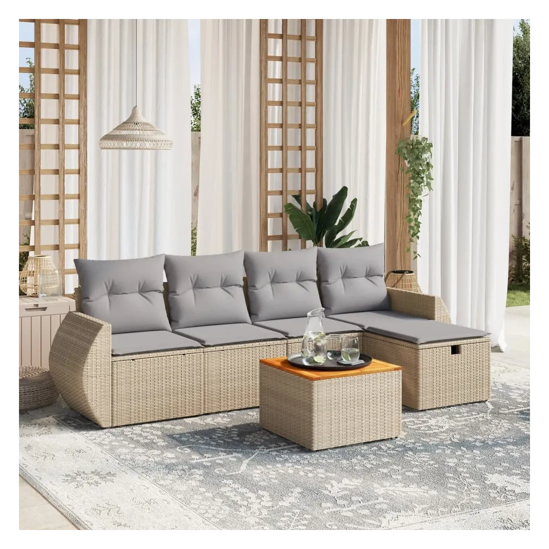 Cet ensemble de canapés de jardin est le complément parfait de votre arrière-cour, terrasse ou patio, offrant un espace confortable et accueillant pour discuter avec la famille et les amis ou simplement se détendre et profiter de l'extérieur. Matériau durable : la résine tressée, également connue sous le nom de poly rotin, est un matériau synthétique solide et nécessitant peu d'entretien qui ressemble au rotin naturel. Il est léger, facile à nettoyer et couramment utilisé pour les meubles d'extérieur en raison de sa durabilité et de ses propriétés de résistance aux intempéries.Dessus stable et facile à nettoyer : cette table de jardin a un dessus en bois d'acacia robuste, durable et facile à nettoyer avec un chiffon humide.Housse amovible et lavable : ces coussins de siège sont dotés de housses amovibles pour un lavage et un entretien faciles.Cadre robuste et stable : le cadre en acier enduit de poudre assure la solidité et la stabilité du meuble de jardin pour une utilisation quotidienne à l'extérieur.Conception modulaire : cet ensemble de meubles d'extérieur a une conception modulaire, ce qui le rend complètement flexible et facile à déplacer, afin que vous puissiez créer un agencement de meubles d'extérieur personnalisé. Bon à savoir :Pour que vos meubles d'extérieur restent beaux, nous vous recommandons de les protéger avec une housse imperméable.