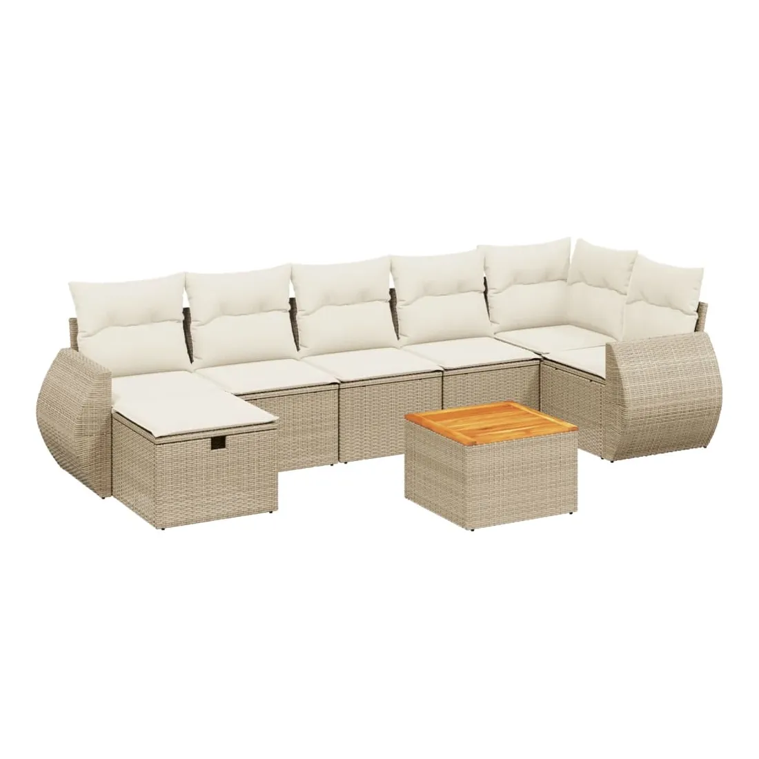 Salon de jardin avec coussins 8 pcs beige résine tressée