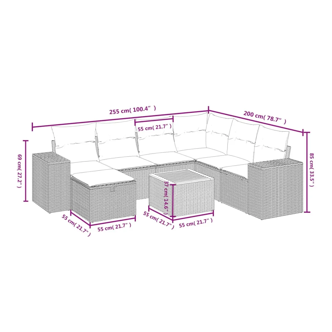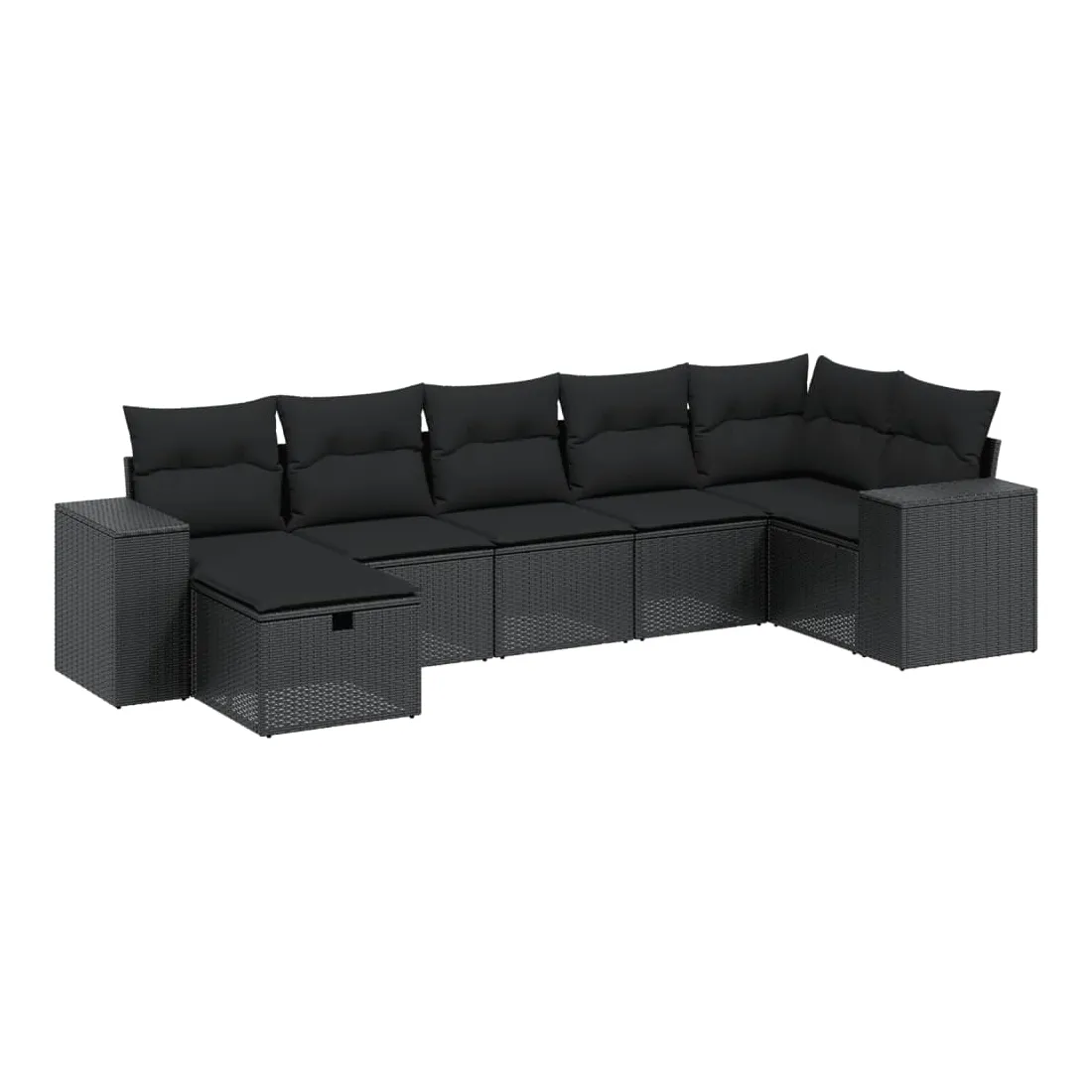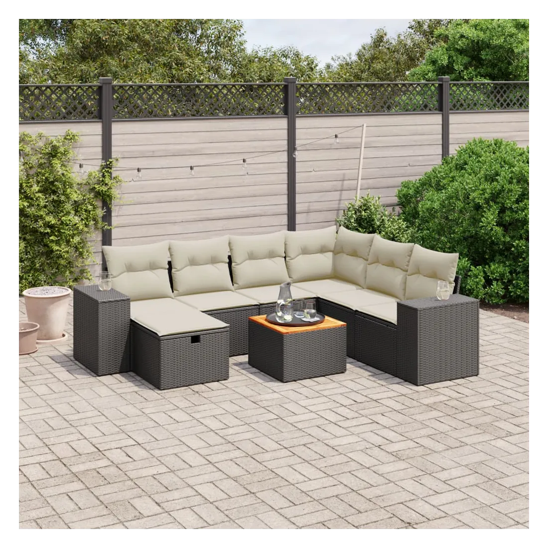 Salon de jardin 8 pcs avec coussins noir résine tressée