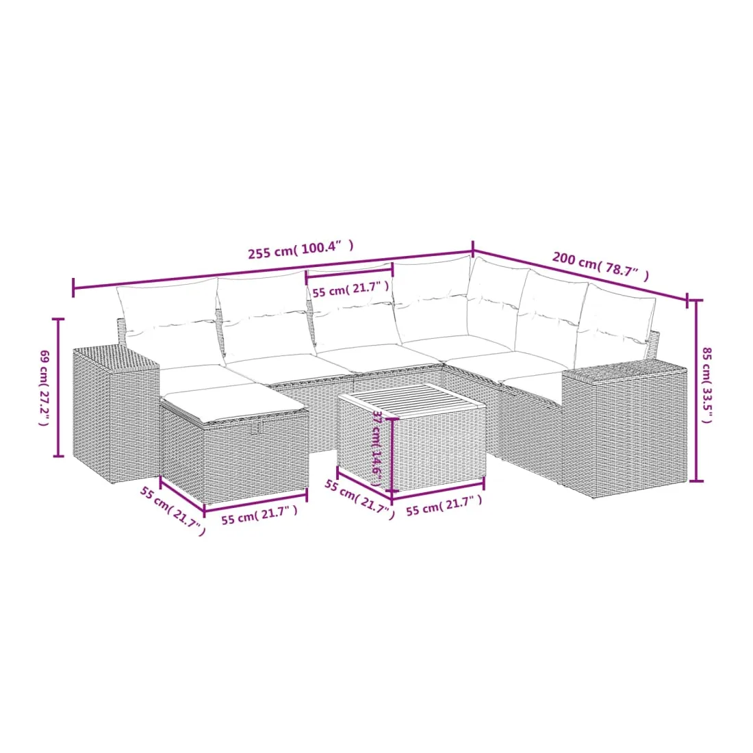 - Dimensions : 55 x 55 x 37 cm (L x l x H)
