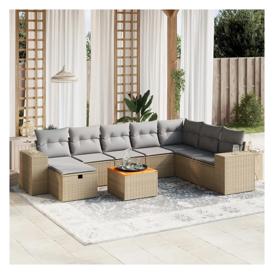Cet ensemble de canapés de jardin est le complément parfait de votre arrière-cour, terrasse ou patio, offrant un espace confortable et accueillant pour discuter avec la famille et les amis ou simplement se détendre et profiter de l'extérieur. Matériau durable : la résine tressée, également connue sous le nom de poly rotin, est un matériau synthétique solide et nécessitant peu d'entretien qui ressemble au rotin naturel. Il est léger, facile à nettoyer et couramment utilisé pour les meubles d'extérieur en raison de sa durabilité et de ses propriétés de résistance aux intempéries.Dessus stable et facile à nettoyer : cette table de jardin a un dessus en bois d'acacia robuste, durable et facile à nettoyer avec un chiffon humide.Housse amovible et lavable : ces coussins de siège sont dotés de housses amovibles pour un lavage et un entretien faciles.Cadre robuste et stable : le cadre en acier enduit de poudre assure la solidité et la stabilité du meuble de jardin pour une utilisation quotidienne à l'extérieur.Conception modulaire : cet ensemble de meubles d'extérieur a une conception modulaire, ce qui le rend complètement flexible et facile à déplacer, afin que vous puissiez créer un agencement de meubles d'extérieur personnalisé. Bon à savoir :Pour que vos meubles d'extérieur restent beaux, nous vous recommandons de les protéger avec une housse imperméable.