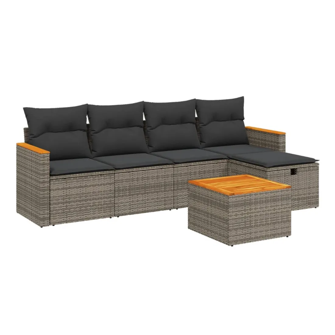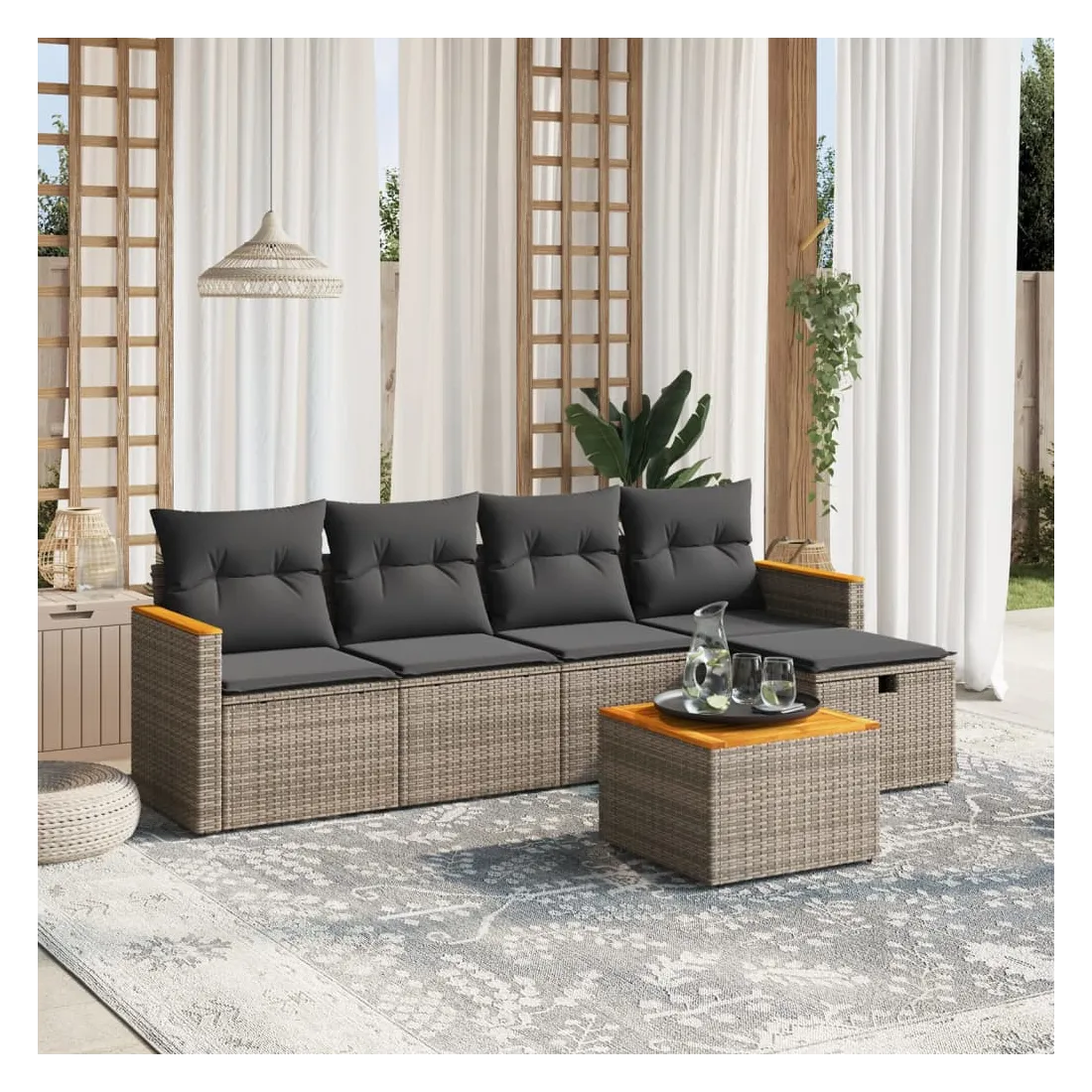 Cet ensemble de canapés de jardin est le complément parfait de votre arrière-cour, terrasse ou patio, offrant un espace confortable et accueillant pour discuter avec la famille et les amis ou simplement se détendre et profiter de l'extérieur. Matériau durable : la résine tressée, également connue sous le nom de poly rotin, est un matériau synthétique solide et nécessitant peu d'entretien qui ressemble au rotin naturel. Il est léger, facile à nettoyer et couramment utilisé pour les meubles d'extérieur en raison de sa durabilité et de ses propriétés de résistance aux intempéries.Dessus stable et facile à nettoyer : cette table de jardin a un dessus en bois d'acacia robuste, durable et facile à nettoyer avec un chiffon humide.Housse amovible et lavable : ces coussins de siège sont dotés de housses amovibles pour un lavage et un entretien faciles.Cadre robuste et stable : le cadre en acier enduit de poudre assure la solidité et la stabilité du meuble de jardin pour une utilisation quotidienne à l'extérieur.Conception modulaire : cet ensemble de meubles d'extérieur a une conception modulaire, ce qui le rend complètement flexible et facile à déplacer, afin que vous puissiez créer un agencement de meubles d'extérieur personnalisé. Bon à savoir :Pour que vos meubles d'extérieur restent beaux, nous vous recommandons de les protéger avec une housse imperméable.