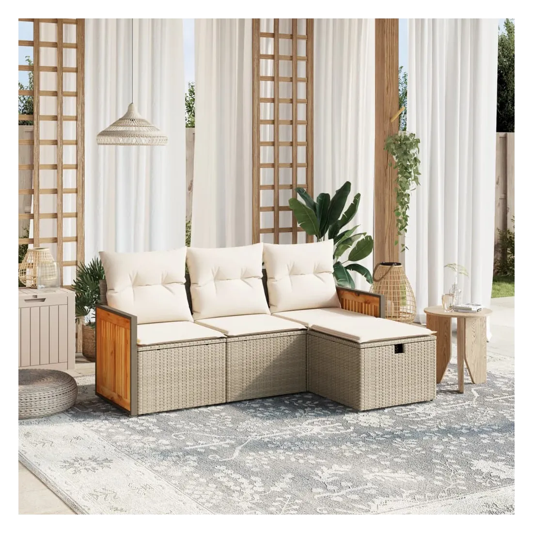 Cet ensemble de canapés de jardin est le complément parfait de votre arrière-cour, terrasse ou patio, offrant un espace confortable et accueillant pour discuter avec la famille et les amis ou simplement se détendre et profiter de l'extérieur. Matériau durable : la résine tressée, également connue sous le nom de poly rotin, est un matériau synthétique solide et nécessitant peu d'entretien qui ressemble au rotin naturel. Il est léger, facile à nettoyer et couramment utilisé pour les meubles d'extérieur en raison de sa durabilité et de ses propriétés de résistance aux intempéries.Expérience d'assise confortable : ce mobilier d'extérieur, doté de coussins épais, offre une expérience d'assise confortable.Housse amovible et lavable : ces coussins de siège sont dotés de housses amovibles pour un lavage et un entretien faciles.Cadre robuste et stable : le cadre en acier enduit de poudre assure la solidité et la stabilité du meuble de jardin pour une utilisation quotidienne à l'extérieur.Conception modulaire : cet ensemble de meubles d'extérieur a une conception modulaire, ce qui le rend complètement flexible et facile à déplacer, afin que vous puissiez créer un agencement de meubles d'extérieur personnalisé. Bon à savoir :Pour que vos meubles d'extérieur restent beaux, nous vous recommandons de les protéger avec une housse imperméable.