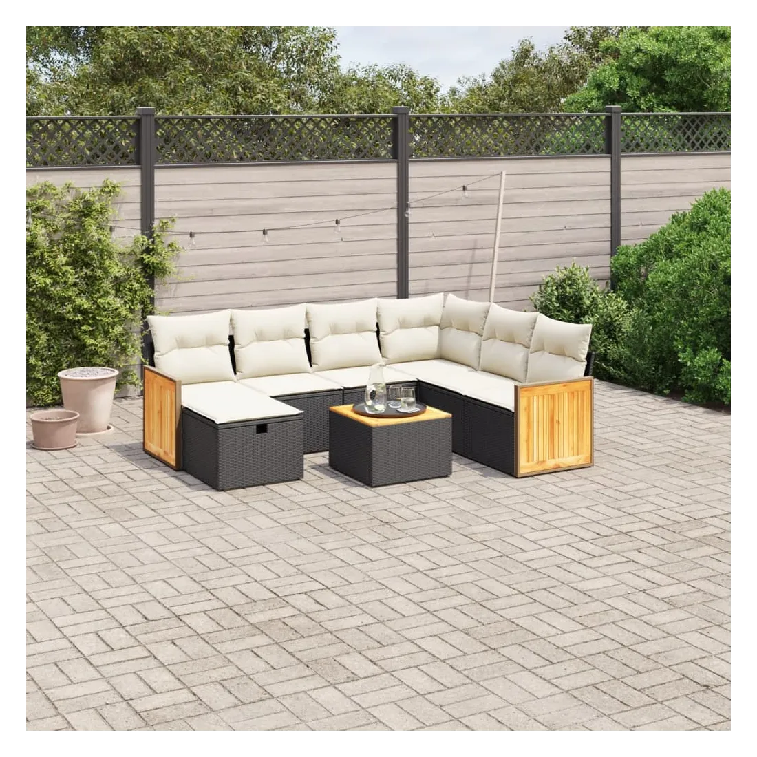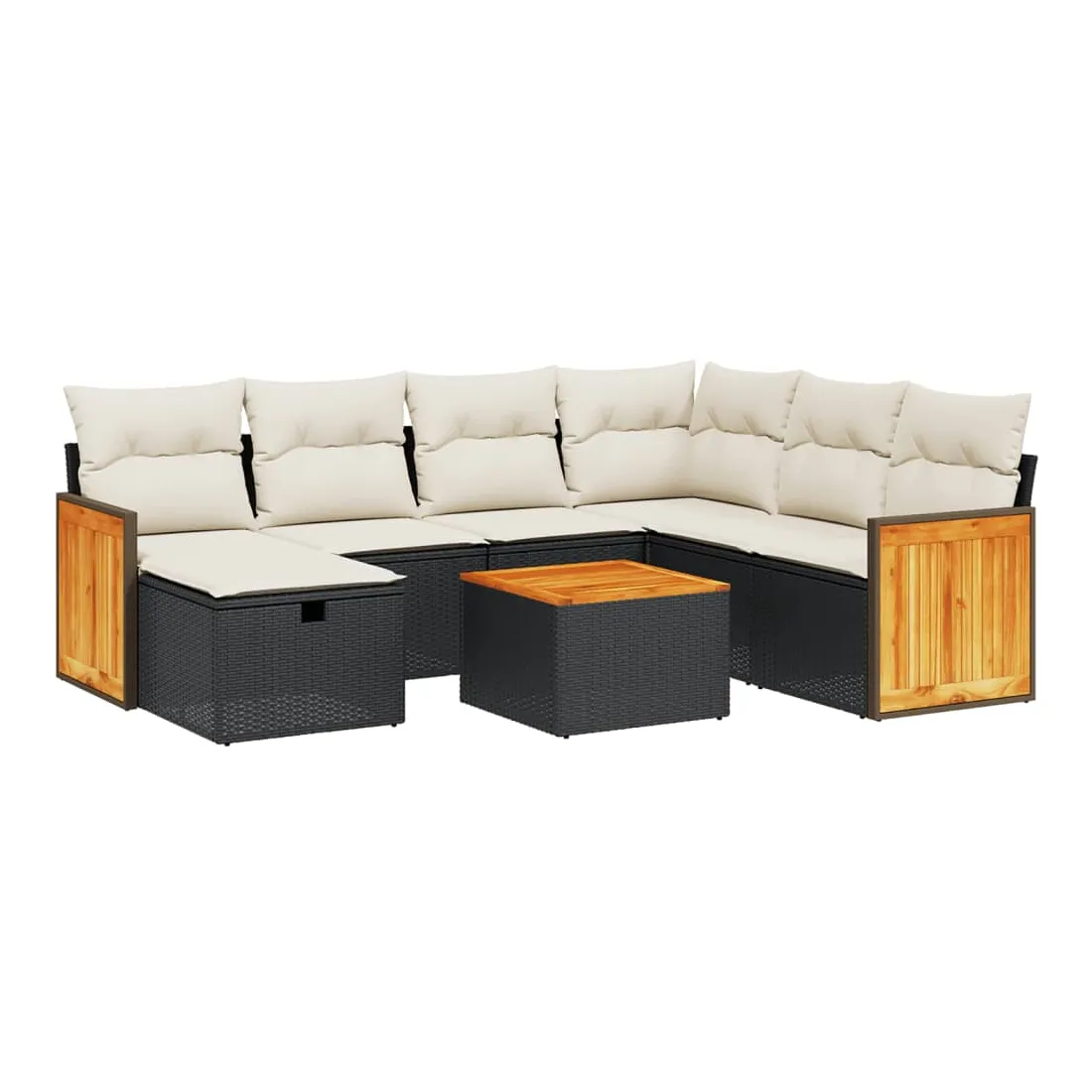 Salon de jardin 8 pcs avec coussins noir résine tressée