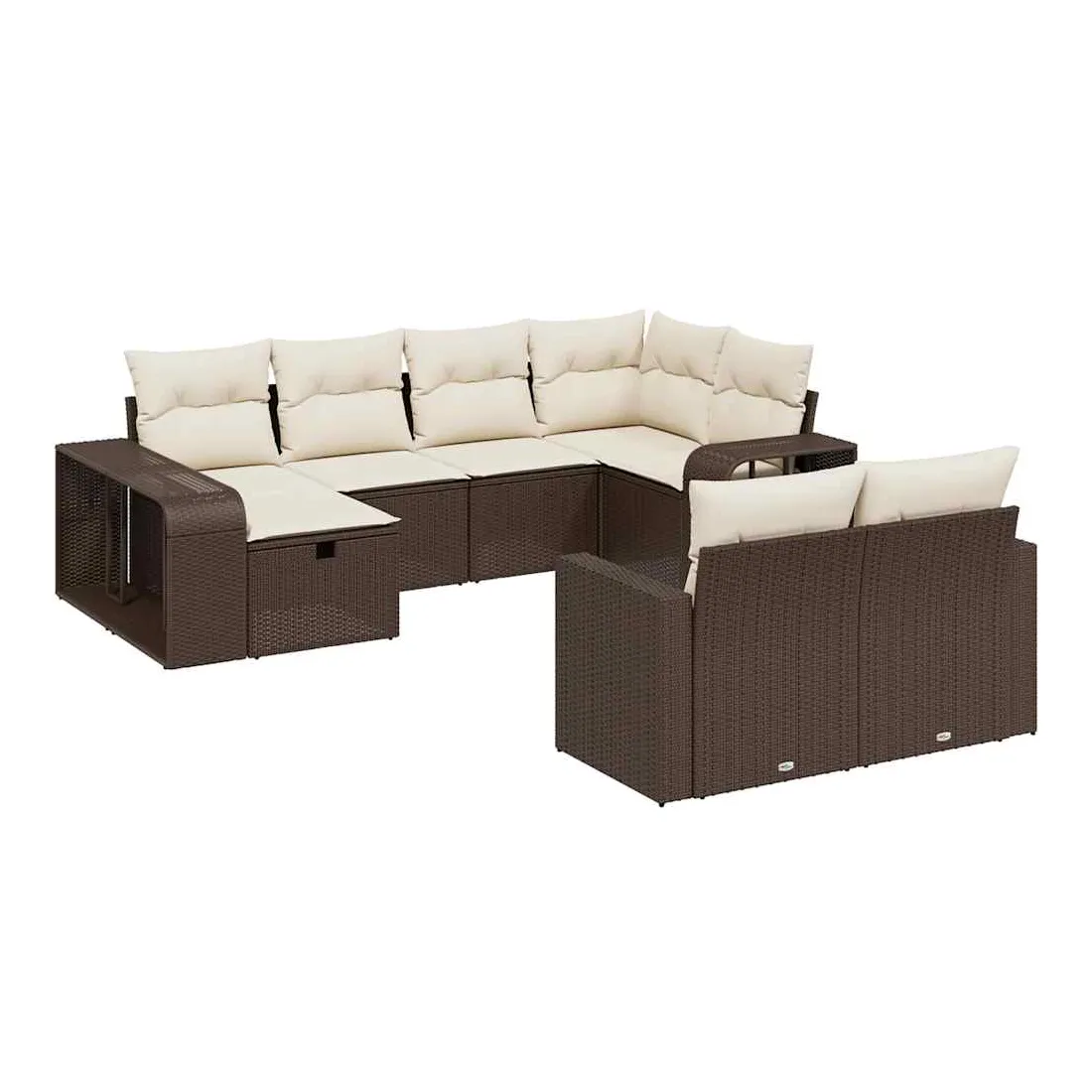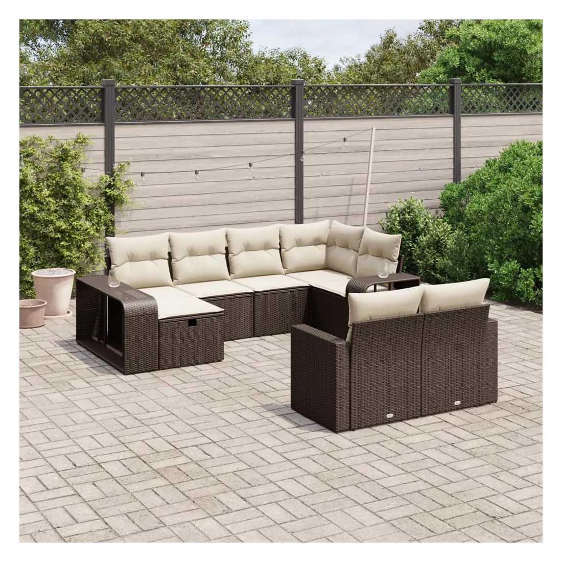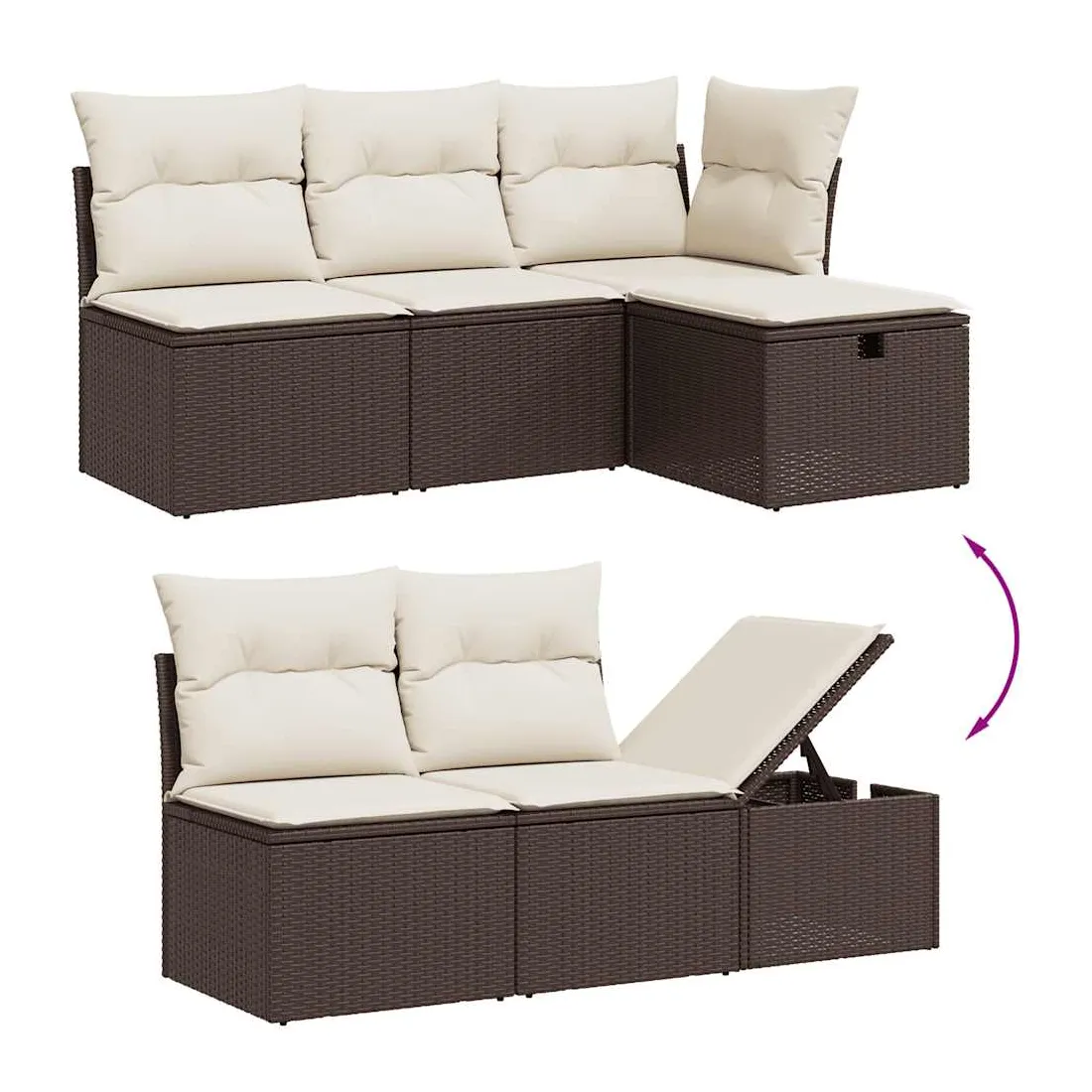 Cet ensemble de canapés de jardin est le complément parfait de votre arrière-cour, terrasse ou patio, offrant un espace confortable et accueillant pour discuter avec la famille et les amis ou simplement se détendre et profiter de l'extérieur. Matériau durable : la résine tressée, également connue sous le nom de poly rotin, est un matériau synthétique solide et nécessitant peu d'entretien qui ressemble au rotin naturel. Il est léger, facile à nettoyer et couramment utilisé pour les meubles d'extérieur en raison de sa durabilité et de ses propriétés de résistance aux intempéries.Grand espace de rangement : avec un espace de rangement intégré, ce meuble d'extérieur offre un grand espace de rangement pour garder vos objets essentiels organisés et facilement accessibles.Housse amovible et lavable : ces coussins de siège sont dotés de housses amovibles pour un lavage et un entretien faciles.Conception modulaire : cet ensemble de meubles d'extérieur a une conception modulaire, ce qui le rend complètement flexible et facile à déplacer, afin que vous puissiez créer un agencement de meubles d'extérieur personnalisé. Bon à savoir :Pour que vos meubles d'extérieur restent beaux, nous vous recommandons de les protéger avec une housse imperméable.