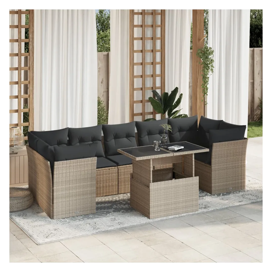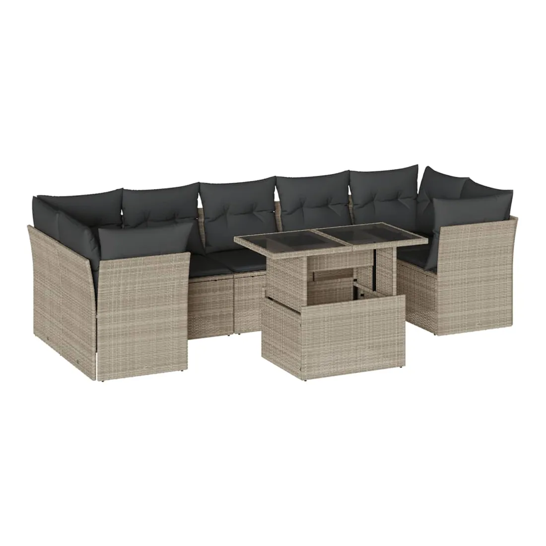 Salon de jardin 8 pcs avec coussins gris clair résine tressée
