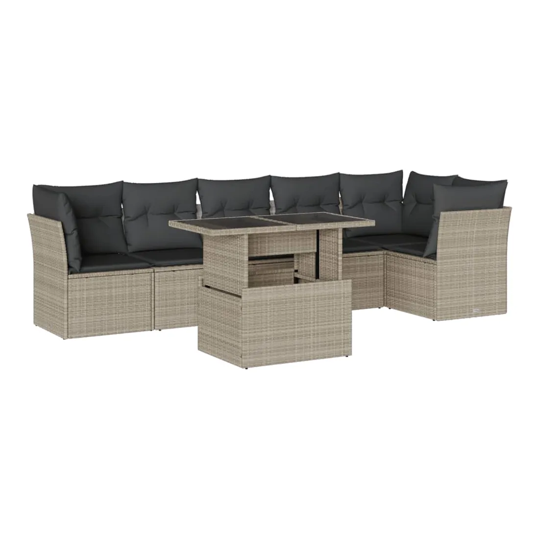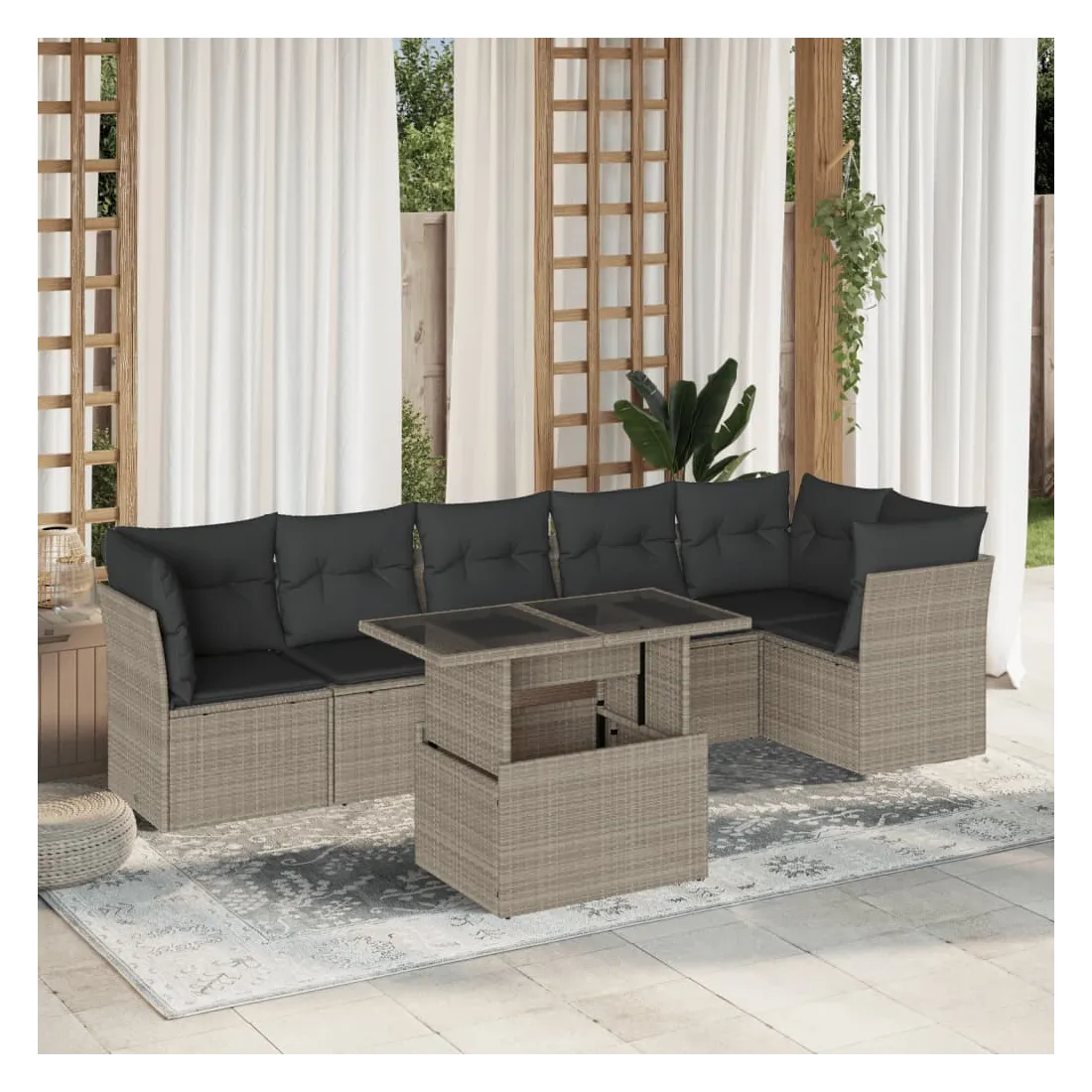 Cet ensemble de canapés de jardin est le complément parfait de votre arrière-cour, terrasse ou patio, offrant un espace confortable et accueillant pour discuter avec la famille et les amis ou simplement se détendre et profiter de l'extérieur. Matériau durable : la résine tressée, également connue sous le nom de poly rotin, est un matériau synthétique solide et nécessitant peu d'entretien qui ressemble au rotin naturel. Elle est légère, facile à nettoyer et couramment utilisée pour les meubles d'extérieur en raison de sa durabilité et de ses propriétés de résistance aux intempéries.Dessus de table réglable : le dessus de table peut être soulevé pour rendre la table plus haute, ce qui transforme la table d'extérieur d'une table basse à une table de salle à manger. Elle est parfaite pour recevoir des invités ou prendre des repas à l'extérieur.Expérience d'assise confortable : ce mobilier d'extérieur, doté de coussins épais, offre une expérience d'assise confortable.Housse amovible et lavable : ces coussins de siège sont dotés de housses amovibles pour un lavage et un entretien faciles.Conception modulaire : cet ensemble de meubles d'extérieur a une conception modulaire, ce qui le rend complètement flexible et facile à déplacer, afin que vous puissiez créer un agencement de meubles d'extérieur personnalisé. Bon à savoir :Pour que vos meubles d'extérieur restent beaux, nous vous recommandons de les protéger avec une housse imperméable.