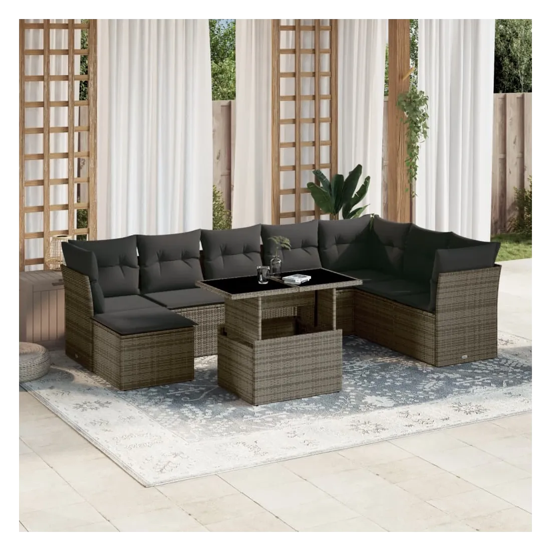 Cet ensemble de canapés de jardin est le complément parfait de votre arrière-cour, terrasse ou patio, offrant un espace confortable et accueillant pour discuter avec la famille et les amis ou simplement se détendre et profiter de l'extérieur. Matériau durable : la résine tressée, également connue sous le nom de poly rotin, est un matériau synthétique solide et nécessitant peu d'entretien qui ressemble au rotin naturel. Il est léger, facile à nettoyer et couramment utilisé pour les meubles d'extérieur en raison de sa durabilité et de ses propriétés de résistance aux intempéries.Dessus de table réglable : le dessus de table peut être soulevé pour rendre la table plus haute, ce qui transforme la table d'extérieur d'une table basse à une table de salle à manger. Elle est parfaite pour recevoir des invités ou prendre des repas à l'extérieur.Expérience d'assise confortable : ce mobilier d'extérieur, doté de coussins épais, offre une expérience d'assise confortable.Housse amovible et lavable : ces coussins de siège sont dotés de housses amovibles pour un lavage et un entretien faciles.Conception modulaire : cet ensemble de meubles d'extérieur a une conception modulaire, ce qui le rend complètement flexible et facile à déplacer, afin que vous puissiez créer un agencement de meubles d'extérieur personnalisé. Bon à savoir :Pour que vos meubles d'extérieur restent beaux, nous vous recommandons de les protéger avec une housse imperméable.