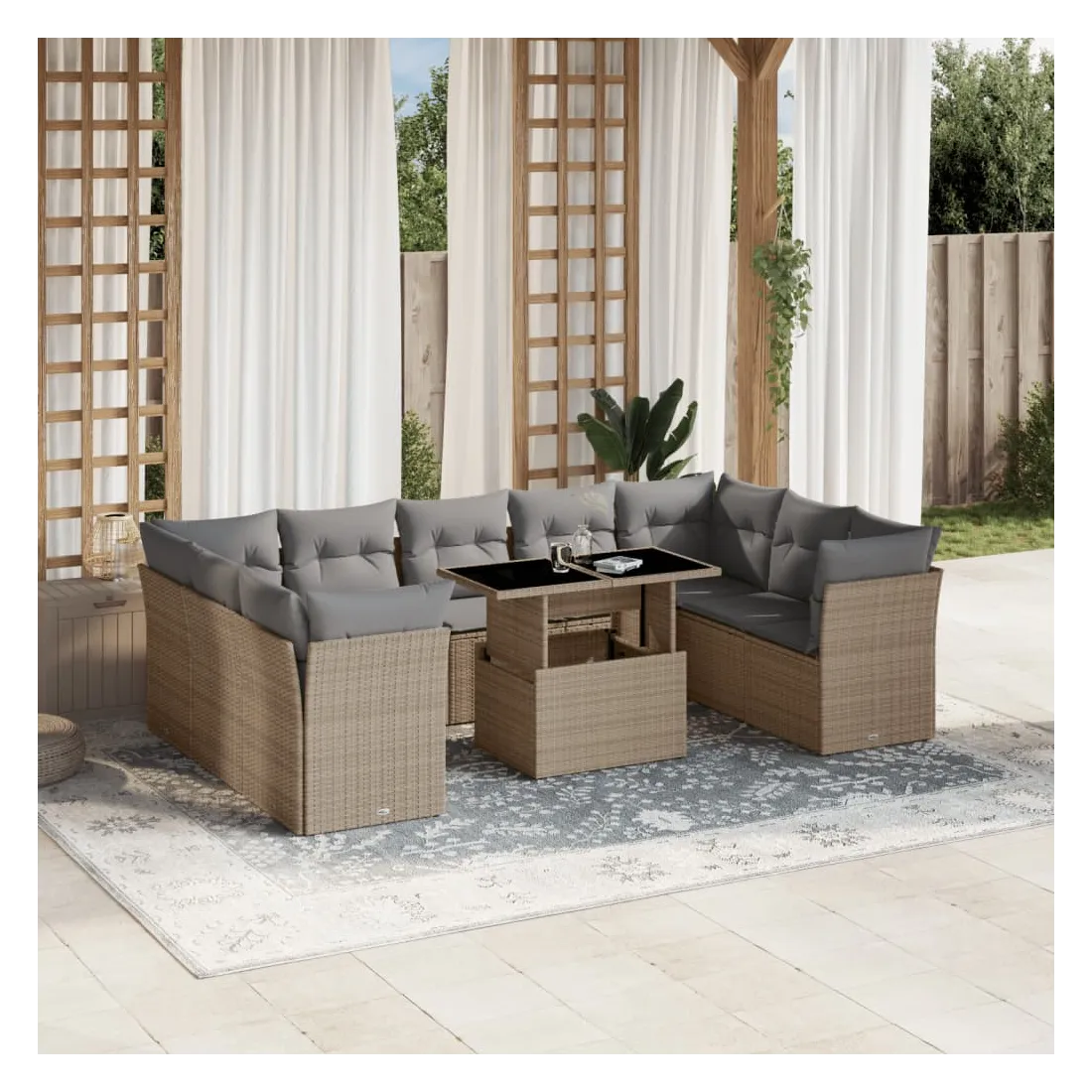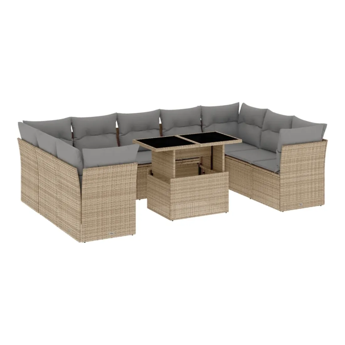 Salon de jardin avec coussins 10 pcs beige résine tressée