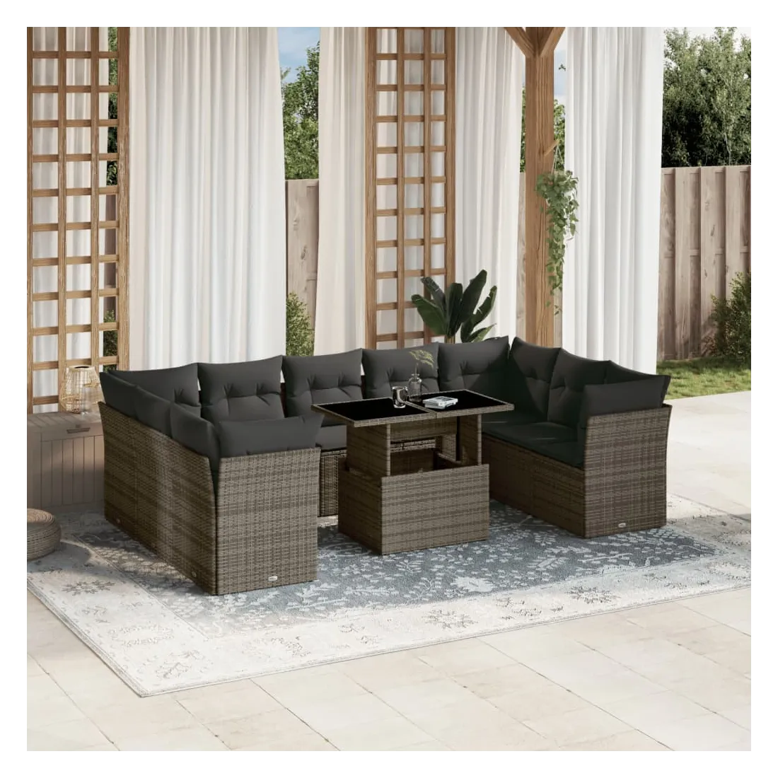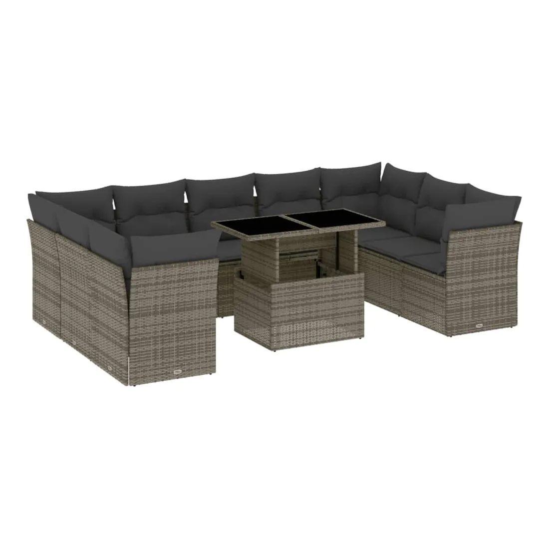Salon de jardin avec coussins 10 pcs gris résine tressée