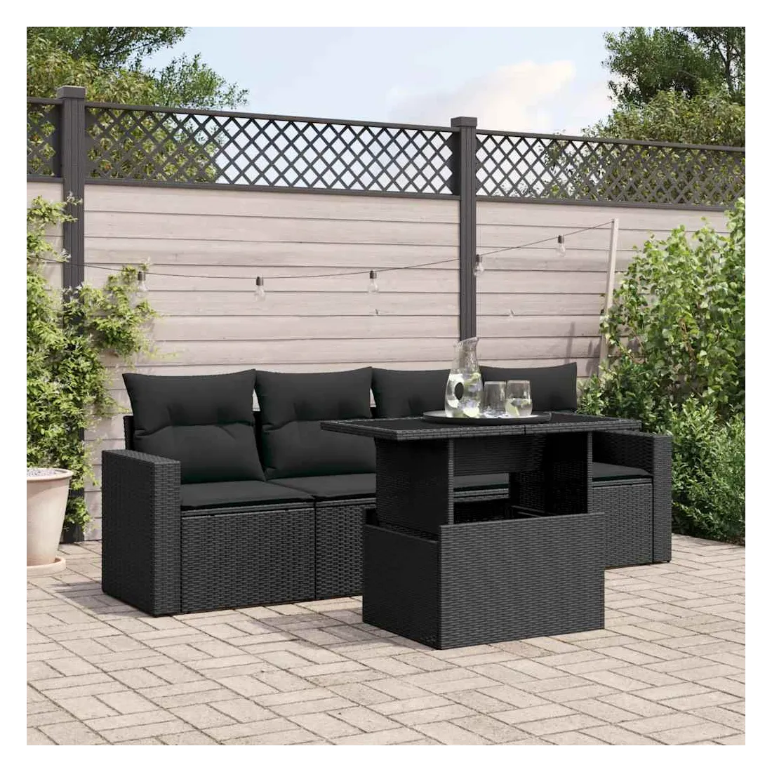 Cet ensemble de canapés de jardin est le complément parfait de votre arrière-cour, terrasse ou patio, offrant un espace confortable et accueillant pour discuter avec la famille et les amis ou simplement se détendre et profiter de l'extérieur. Matériau durable : la résine tressée, également connue sous le nom de poly rotin, est un matériau synthétique solide et nécessitant peu d'entretien qui ressemble au rotin naturel. Il est léger, facile à nettoyer et couramment utilisé pour les meubles d'extérieur en raison de sa durabilité et de ses propriétés de résistance aux intempéries.Dessus de table réglable : le dessus de table peut être soulevé pour rendre la table plus haute, ce qui transforme la table d'extérieur d'une table basse à une table de salle à manger. Elle est parfaite pour recevoir des invités ou prendre des repas à l'extérieur.Expérience d'assise confortable : ce mobilier d'extérieur, doté de coussins épais, offre une expérience d'assise confortable.Housse amovible et lavable : ces coussins de siège sont dotés de housses amovibles pour un lavage et un entretien faciles.Conception modulaire : cet ensemble de meubles d'extérieur a une conception modulaire, ce qui le rend complètement flexible et facile à déplacer, afin que vous puissiez créer un agencement de meubles d'extérieur personnalisé. Bon à savoir :Pour que vos meubles d'extérieur restent beaux, nous vous recommandons de les protéger avec une housse imperméable.