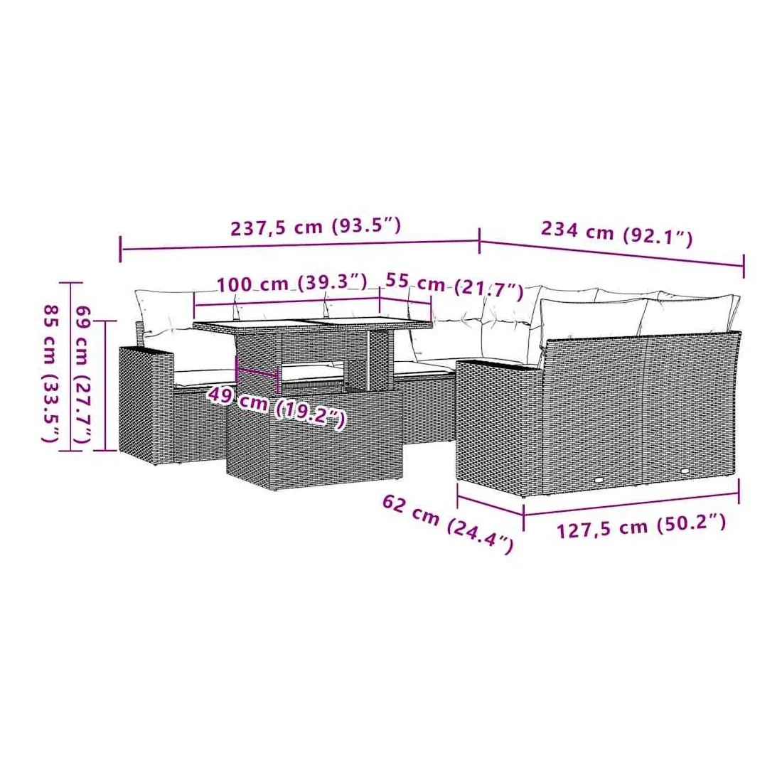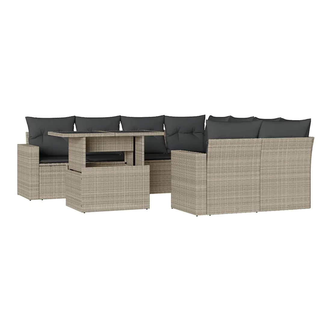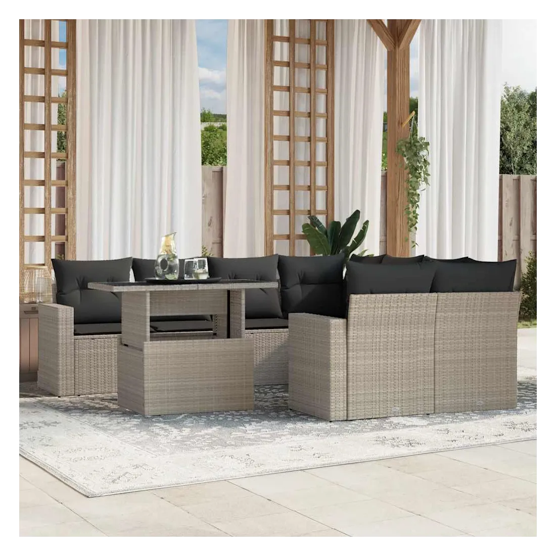 Cet ensemble de canapés de jardin est le complément parfait de votre arrière-cour, terrasse ou patio, offrant un espace confortable et accueillant pour discuter avec la famille et les amis ou simplement se détendre et profiter de l'extérieur. Matériau durable : la résine tressée, également connue sous le nom de poly rotin, est un matériau synthétique solide et nécessitant peu d'entretien qui ressemble au rotin naturel. Elle est légère, facile à nettoyer et couramment utilisée pour les meubles d'extérieur en raison de sa durabilité et de ses propriétés de résistance aux intempéries.Dessus de table réglable : le dessus de table peut être soulevé pour rendre la table plus haute, ce qui transforme la table d'extérieur d'une table basse à une table de salle à manger. Elle est parfaite pour recevoir des invités ou prendre des repas à l'extérieur.Expérience d'assise confortable : ce mobilier d'extérieur, doté de coussins épais, offre une expérience d'assise confortable.Housse amovible et lavable : ces coussins de siège sont dotés de housses amovibles pour un lavage et un entretien faciles.Conception modulaire : cet ensemble de meubles d'extérieur a une conception modulaire, ce qui le rend complètement flexible et facile à déplacer, afin que vous puissiez créer un agencement de meubles d'extérieur personnalisé. Bon à savoir :Pour que vos meubles d'extérieur restent beaux, nous vous recommandons de les protéger avec une housse imperméable.