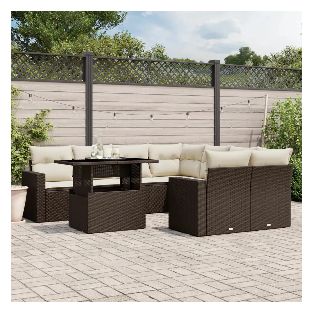 Cet ensemble de canapés de jardin est le complément parfait de votre arrière-cour, terrasse ou patio, offrant un espace confortable et accueillant pour discuter avec la famille et les amis ou simplement se détendre et profiter de l'extérieur. Matériau durable : la résine tressée, également connue sous le nom de poly rotin, est un matériau synthétique solide et nécessitant peu d'entretien qui ressemble au rotin naturel. Il est léger, facile à nettoyer et couramment utilisé pour les meubles d'extérieur en raison de sa durabilité et de ses propriétés de résistance aux intempéries.Dessus de table réglable : le dessus de table peut être soulevé pour rendre la table plus haute, ce qui transforme la table d'extérieur d'une table basse à une table de salle à manger. Elle est parfaite pour recevoir des invités ou prendre des repas à l'extérieur.Expérience d'assise confortable : ce mobilier d'extérieur, doté de coussins épais, offre une expérience d'assise confortable.Housse amovible et lavable : ces coussins de siège sont dotés de housses amovibles pour un lavage et un entretien faciles.Conception modulaire : cet ensemble de meubles d'extérieur a une conception modulaire, ce qui le rend complètement flexible et facile à déplacer, afin que vous puissiez créer un agencement de meubles d'extérieur personnalisé. Bon à savoir :Pour que vos meubles d'extérieur restent beaux, nous vous recommandons de les protéger avec une housse imperméable.