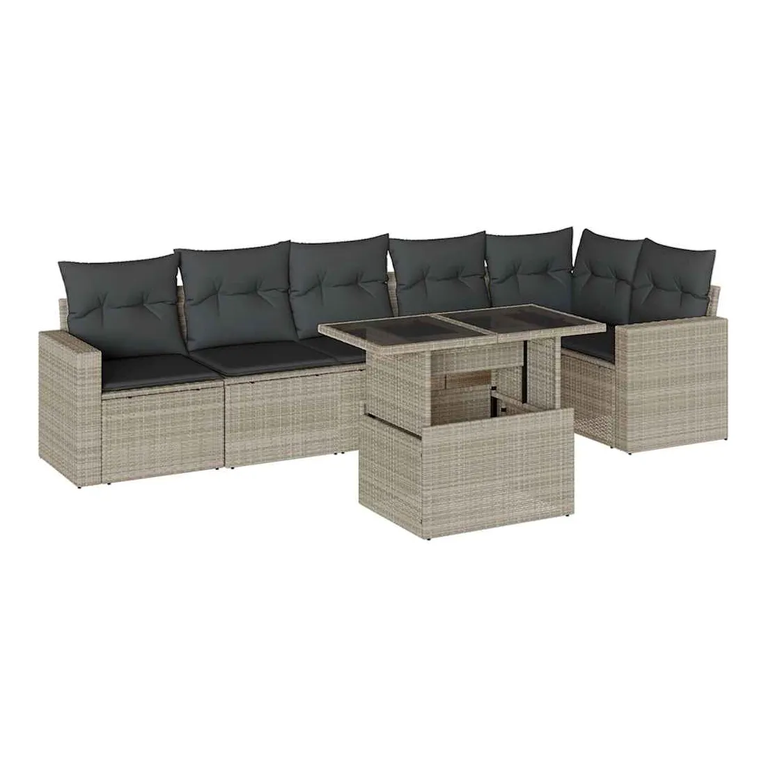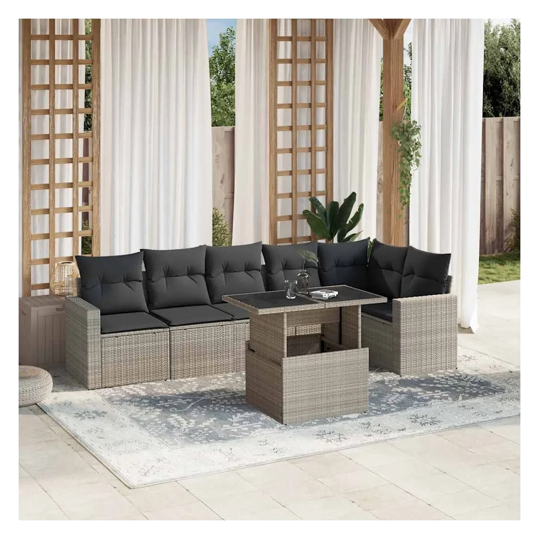 Cet ensemble de canapés de jardin est le complément parfait de votre arrière-cour, terrasse ou patio, offrant un espace confortable et accueillant pour discuter avec la famille et les amis ou simplement se détendre et profiter de l'extérieur. Matériau durable : la résine tressée, également connue sous le nom de poly rotin, est un matériau synthétique solide et nécessitant peu d'entretien qui ressemble au rotin naturel. Elle est légère, facile à nettoyer et couramment utilisée pour les meubles d'extérieur en raison de sa durabilité et de ses propriétés de résistance aux intempéries.Dessus de table réglable : le dessus de table peut être soulevé pour rendre la table plus haute, ce qui transforme la table d'extérieur d'une table basse à une table de salle à manger. Elle est parfaite pour recevoir des invités ou prendre des repas à l'extérieur.Expérience d'assise confortable : ce mobilier d'extérieur, doté de coussins épais, offre une expérience d'assise confortable.Housse amovible et lavable : ces coussins de siège sont dotés de housses amovibles pour un lavage et un entretien faciles.Conception modulaire : cet ensemble de meubles d'extérieur a une conception modulaire, ce qui le rend complètement flexible et facile à déplacer, afin que vous puissiez créer un agencement de meubles d'extérieur personnalisé. Bon à savoir :Pour que vos meubles d'extérieur restent beaux, nous vous recommandons de les protéger avec une housse imperméable.