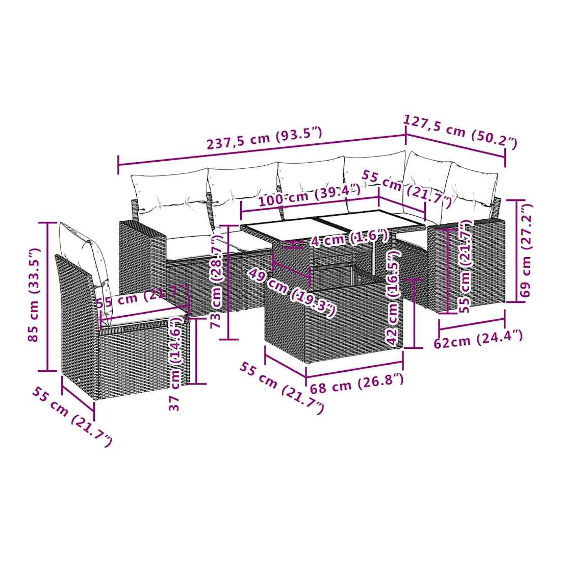 Cet ensemble de canapés de jardin est le complément parfait de votre arrière-cour, terrasse ou patio, offrant un espace confortable et accueillant pour discuter avec la famille et les amis ou simplement se détendre et profiter de l'extérieur. Matériau durable : la résine tressée, également connue sous le nom de poly rotin, est un matériau synthétique solide et nécessitant peu d'entretien qui ressemble au rotin naturel. Il est léger, facile à nettoyer et couramment utilisé pour les meubles d'extérieur en raison de sa durabilité et de ses propriétés de résistance aux intempéries.Dessus de table réglable : le dessus de table peut être soulevé pour rendre la table plus haute, ce qui transforme la table d'extérieur d'une table basse à une table de salle à manger. Elle est parfaite pour recevoir des invités ou prendre des repas à l'extérieur.Expérience d'assise confortable : ce mobilier d'extérieur, doté de coussins épais, offre une expérience d'assise confortable.Housse amovible et lavable : ces coussins de siège sont dotés de housses amovibles pour un lavage et un entretien faciles.Conception modulaire : cet ensemble de meubles d'extérieur a une conception modulaire, ce qui le rend complètement flexible et facile à déplacer, afin que vous puissiez créer un agencement de meubles d'extérieur personnalisé. Bon à savoir :Pour que vos meubles d'extérieur restent beaux, nous vous recommandons de les protéger avec une housse imperméable.