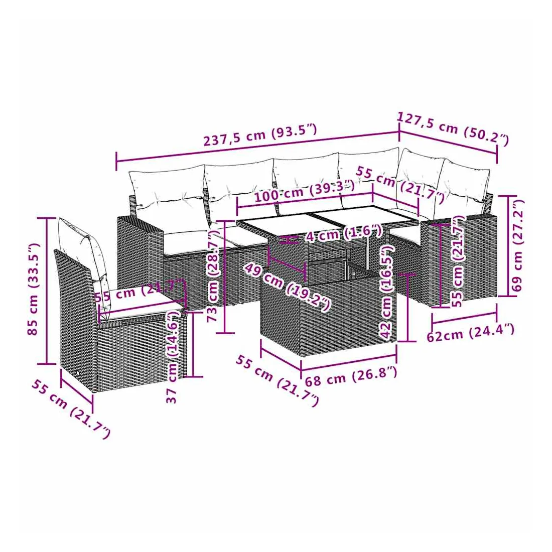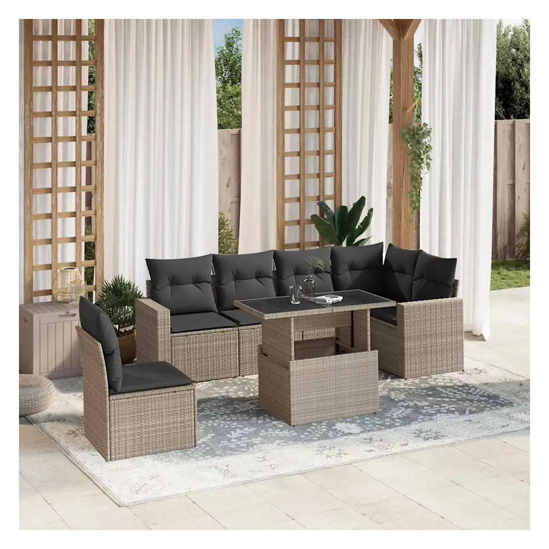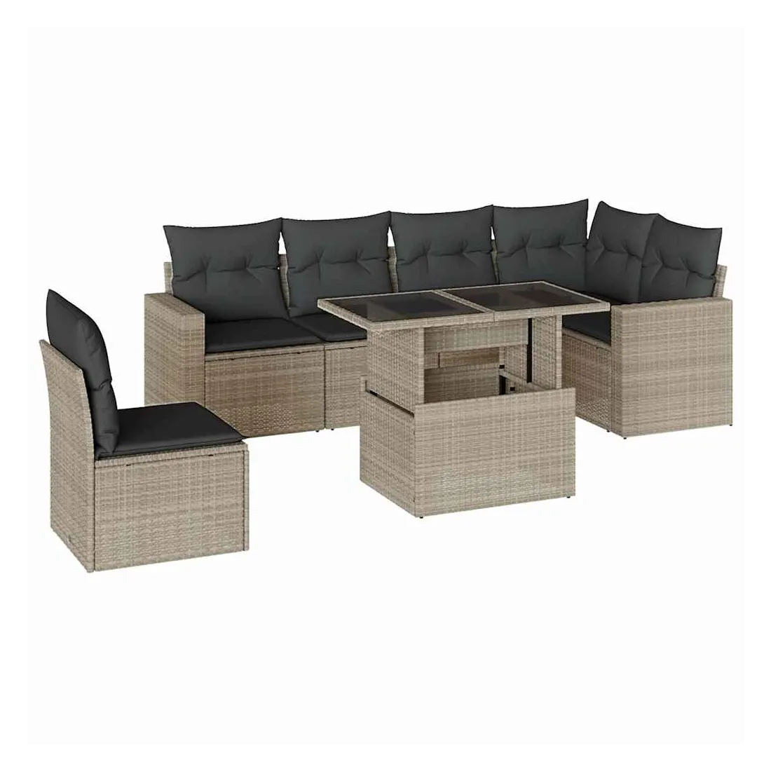 Salon de jardin avec coussins 7 pcs gris clair résine tressée