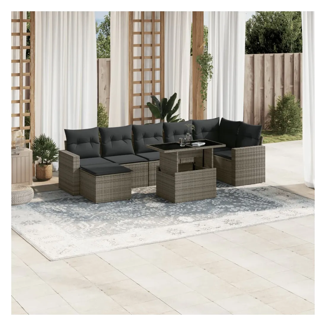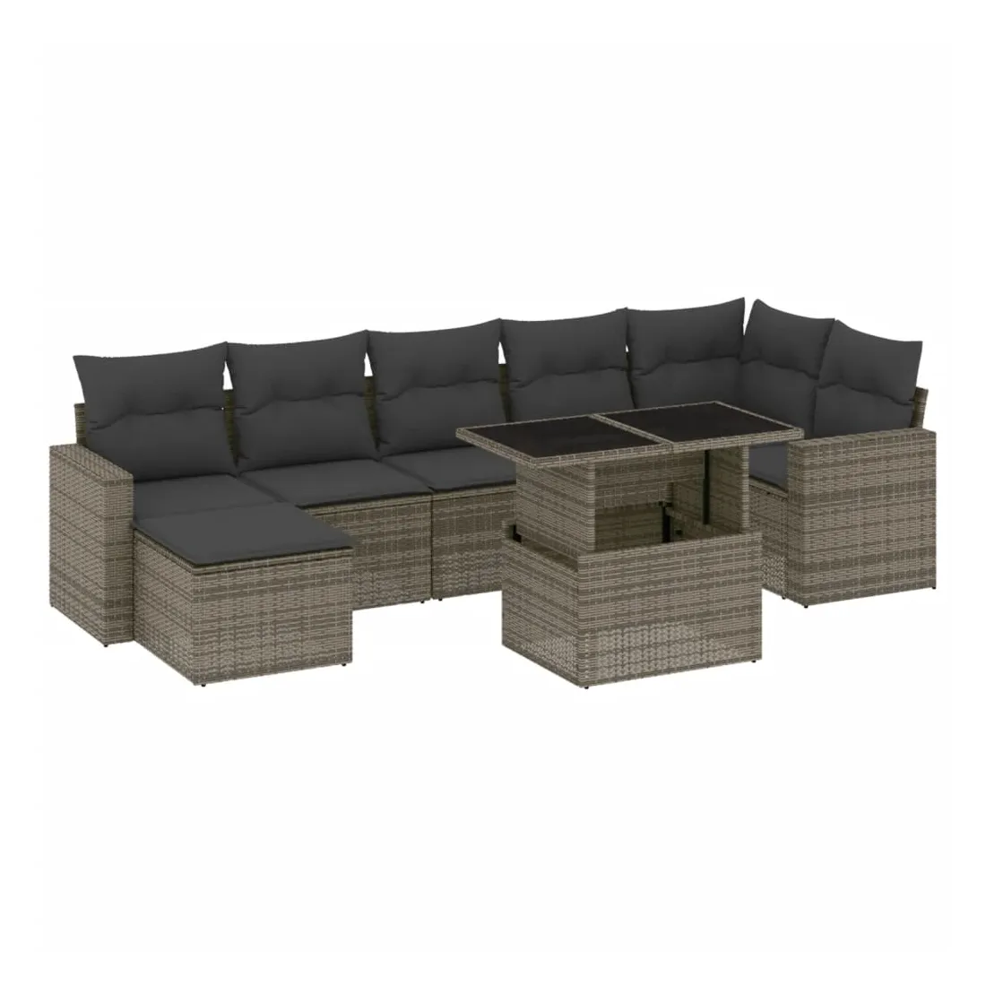 Salon de jardin 8 pcs avec coussins gris résine tressée