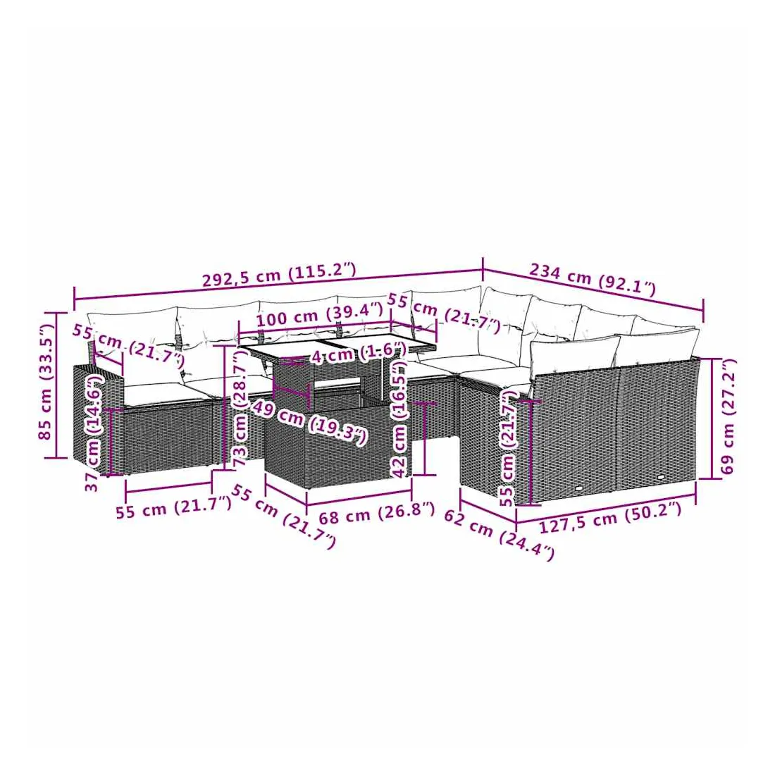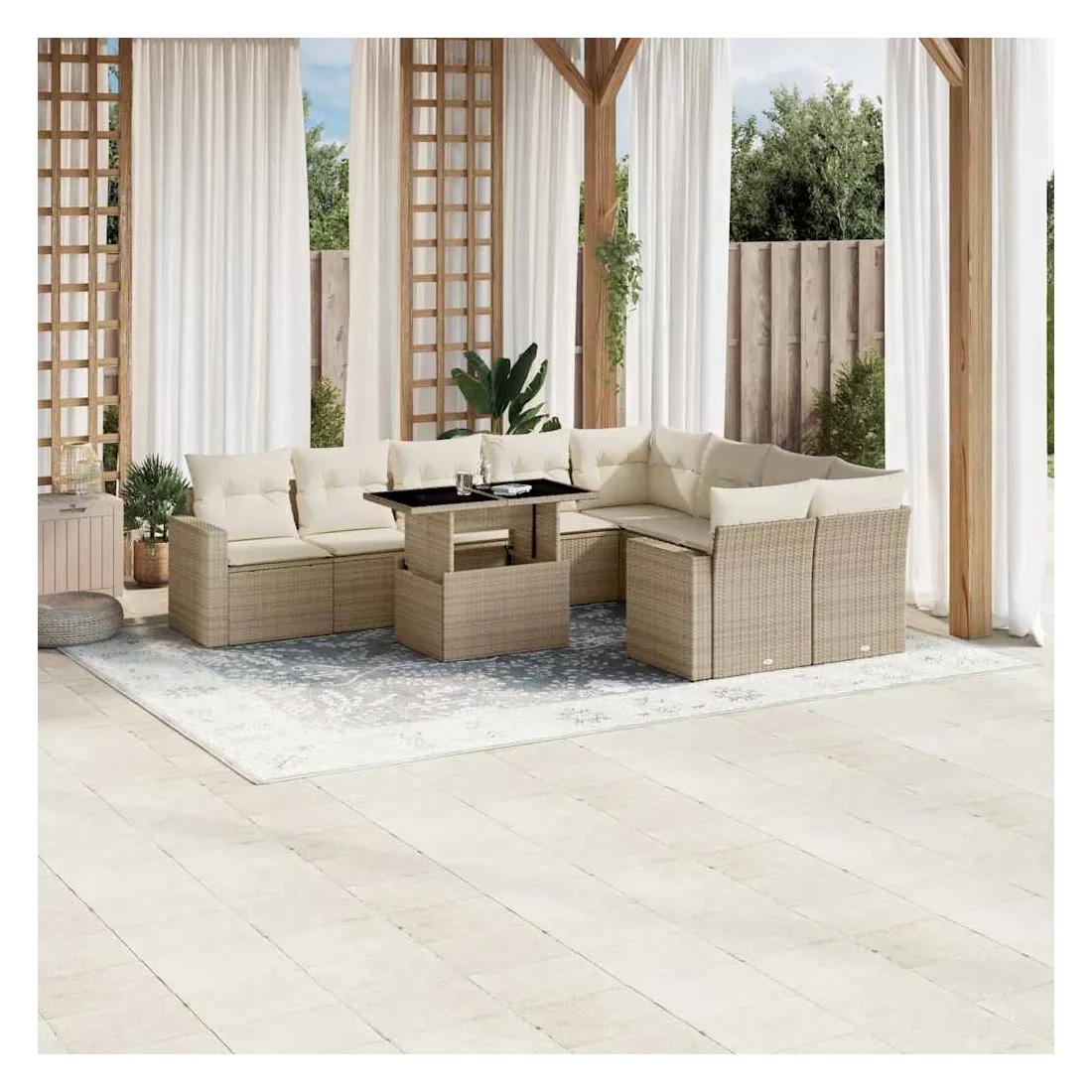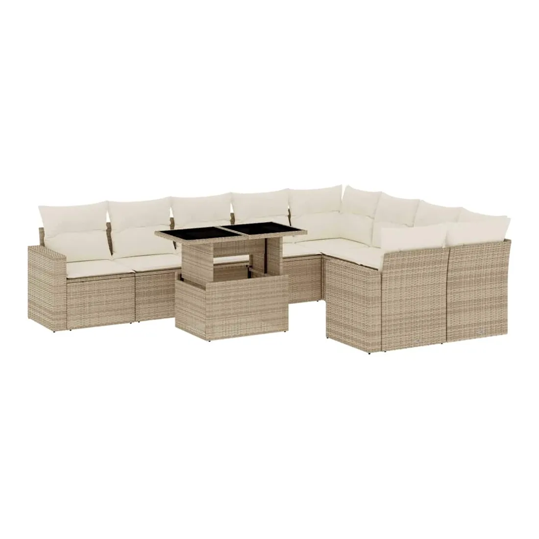 Salon de jardin avec coussins 10 pcs beige résine tressée
