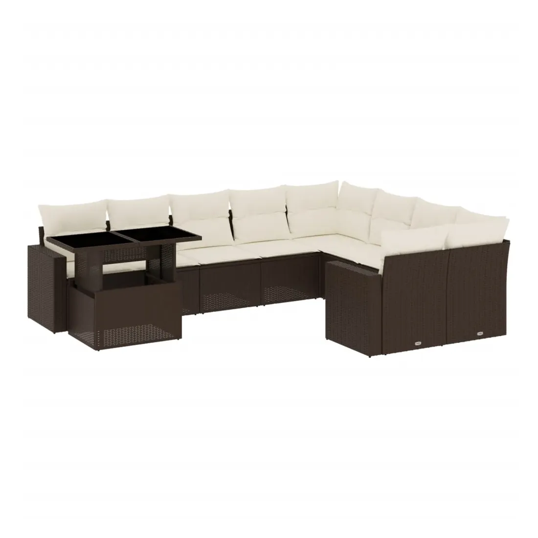 Salon de jardin 10 pcs avec coussins marron résine tressée