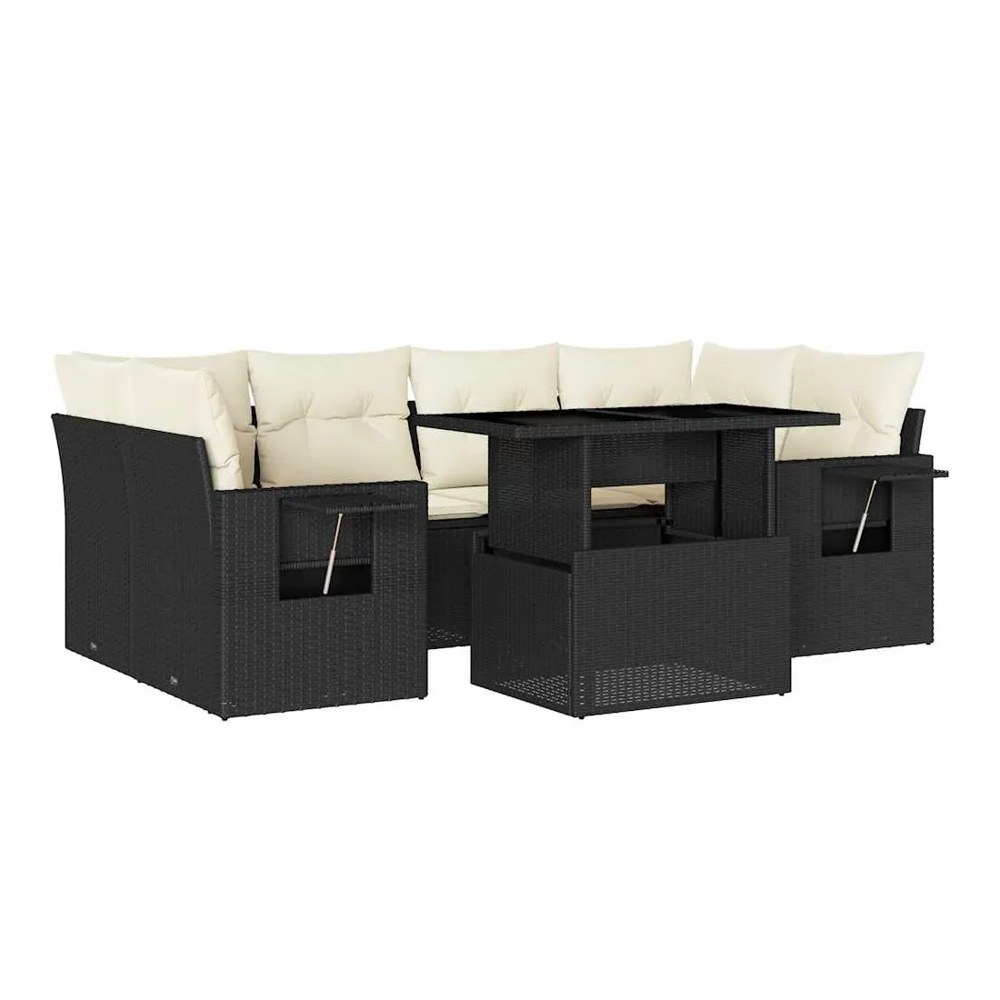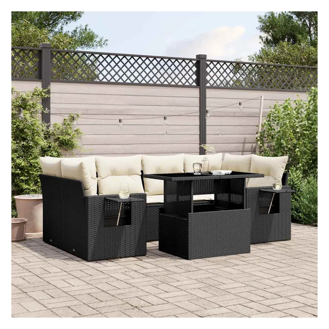 Cet ensemble de canapés de jardin est le complément parfait de votre arrière-cour, terrasse ou patio, offrant un espace confortable et accueillant pour discuter avec la famille et les amis ou simplement se détendre et profiter de l'extérieur. Matériau durable : la résine tressée, également connue sous le nom de poly rotin, est un matériau synthétique solide et nécessitant peu d'entretien qui ressemble au rotin naturel. Il est léger, facile à nettoyer et couramment utilisé pour les meubles d'extérieur en raison de sa durabilité et de ses propriétés de résistance aux intempéries.Dessus de table réglable : le dessus de table peut être soulevé pour rendre la table plus haute, ce qui transforme la table d'extérieur d'une table basse à une table de salle à manger. Elle est parfaite pour recevoir des invités ou prendre des repas à l'extérieur.Table d'appoint pratique : ce mobilier d'extérieur comprend des tables d'appoint pliables avec un ressort à gaz sur les accoudoirs, offrant des endroits pratiques pour garder vos essentiels à portée de main. Expérience d'assise confortable : ce mobilier d'extérieur, doté de coussins épais, offre une expérience d'assise confortable.Conception modulaire : cet ensemble de meubles d'extérieur a une conception modulaire, ce qui le rend complètement flexible et facile à déplacer, afin que vous puissiez créer un agencement de meubles d'extérieur personnalisé. Bon à savoir :Pour que vos meubles d'extérieur restent beaux, nous vous recommandons de les protéger avec une housse imperméable.