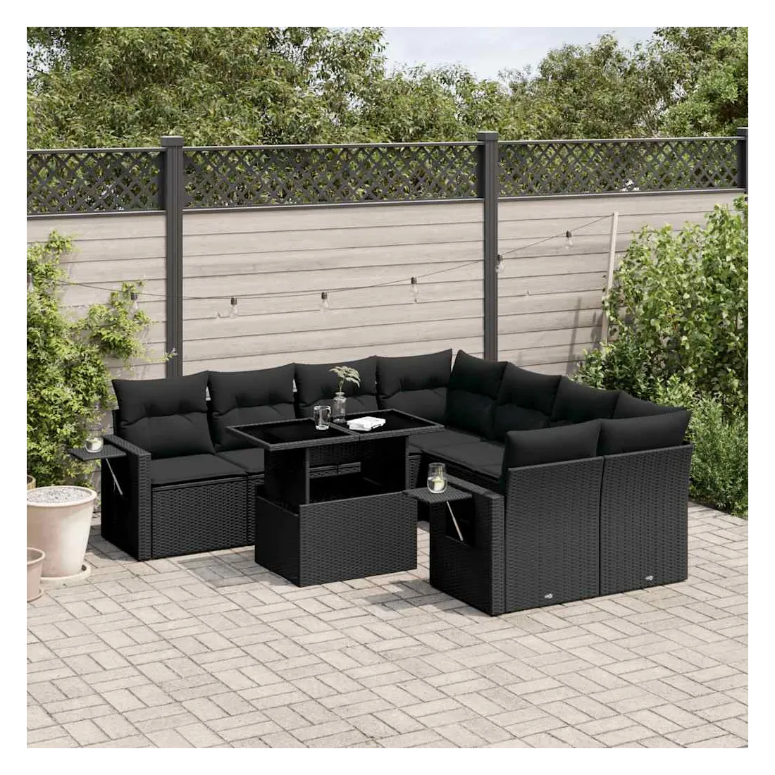 Cet ensemble de canapés de jardin est le complément parfait de votre arrière-cour, terrasse ou patio, offrant un espace confortable et accueillant pour discuter avec la famille et les amis ou simplement se détendre et profiter de l'extérieur. Matériau durable : la résine tressée, également connue sous le nom de poly rotin, est un matériau synthétique solide et nécessitant peu d'entretien qui ressemble au rotin naturel. Il est léger, facile à nettoyer et couramment utilisé pour les meubles d'extérieur en raison de sa durabilité et de ses propriétés de résistance aux intempéries.Dessus de table réglable : le dessus de table peut être soulevé pour rendre la table plus haute, ce qui transforme la table d'extérieur d'une table basse à une table de salle à manger. Elle est parfaite pour recevoir des invités ou prendre des repas à l'extérieur.Table d'appoint pratique : ce mobilier d'extérieur comprend des tables d'appoint pliables avec un ressort à gaz sur les accoudoirs, offrant des endroits pratiques pour garder vos essentiels à portée de main. Expérience d'assise confortable : ce mobilier d'extérieur, doté de coussins épais, offre une expérience d'assise confortable.Conception modulaire : cet ensemble de meubles d'extérieur a une conception modulaire, ce qui le rend complètement flexible et facile à déplacer, afin que vous puissiez créer un agencement de meubles d'extérieur personnalisé. Bon à savoir :Pour que vos meubles d'extérieur restent beaux, nous vous recommandons de les protéger avec une housse imperméable.