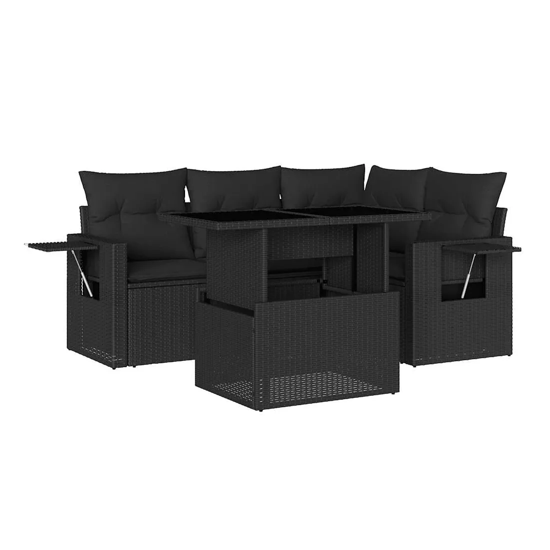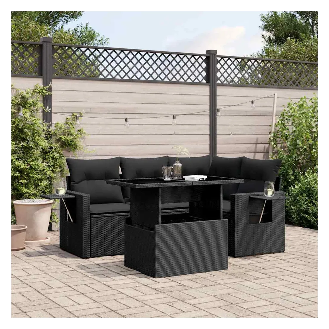 Cet ensemble de canapés de jardin est le complément parfait de votre arrière-cour, terrasse ou patio, offrant un espace confortable et accueillant pour discuter avec la famille et les amis ou simplement se détendre et profiter de l'extérieur. Matériau durable : la résine tressée, également connue sous le nom de poly rotin, est un matériau synthétique solide et nécessitant peu d'entretien qui ressemble au rotin naturel. Il est léger, facile à nettoyer et couramment utilisé pour les meubles d'extérieur en raison de sa durabilité et de ses propriétés de résistance aux intempéries.Dessus de table réglable : le dessus de table peut être soulevé pour rendre la table plus haute, ce qui transforme la table d'extérieur d'une table basse à une table de salle à manger. Elle est parfaite pour recevoir des invités ou prendre des repas à l'extérieur.Table d'appoint pratique : ce mobilier d'extérieur comprend des tables d'appoint pliables avec un ressort à gaz sur les accoudoirs, offrant des endroits pratiques pour garder vos essentiels à portée de main. Expérience d'assise confortable : ce mobilier d'extérieur, doté de coussins épais, offre une expérience d'assise confortable.Conception modulaire : cet ensemble de meubles d'extérieur a une conception modulaire, ce qui le rend complètement flexible et facile à déplacer, afin que vous puissiez créer un agencement de meubles d'extérieur personnalisé. Bon à savoir :Pour que vos meubles d'extérieur restent beaux, nous vous recommandons de les protéger avec une housse imperméable.