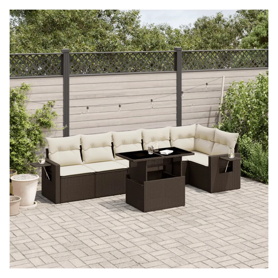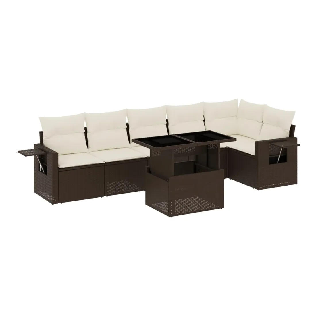 Salon de jardin avec coussins 7 pcs marron résine tressée