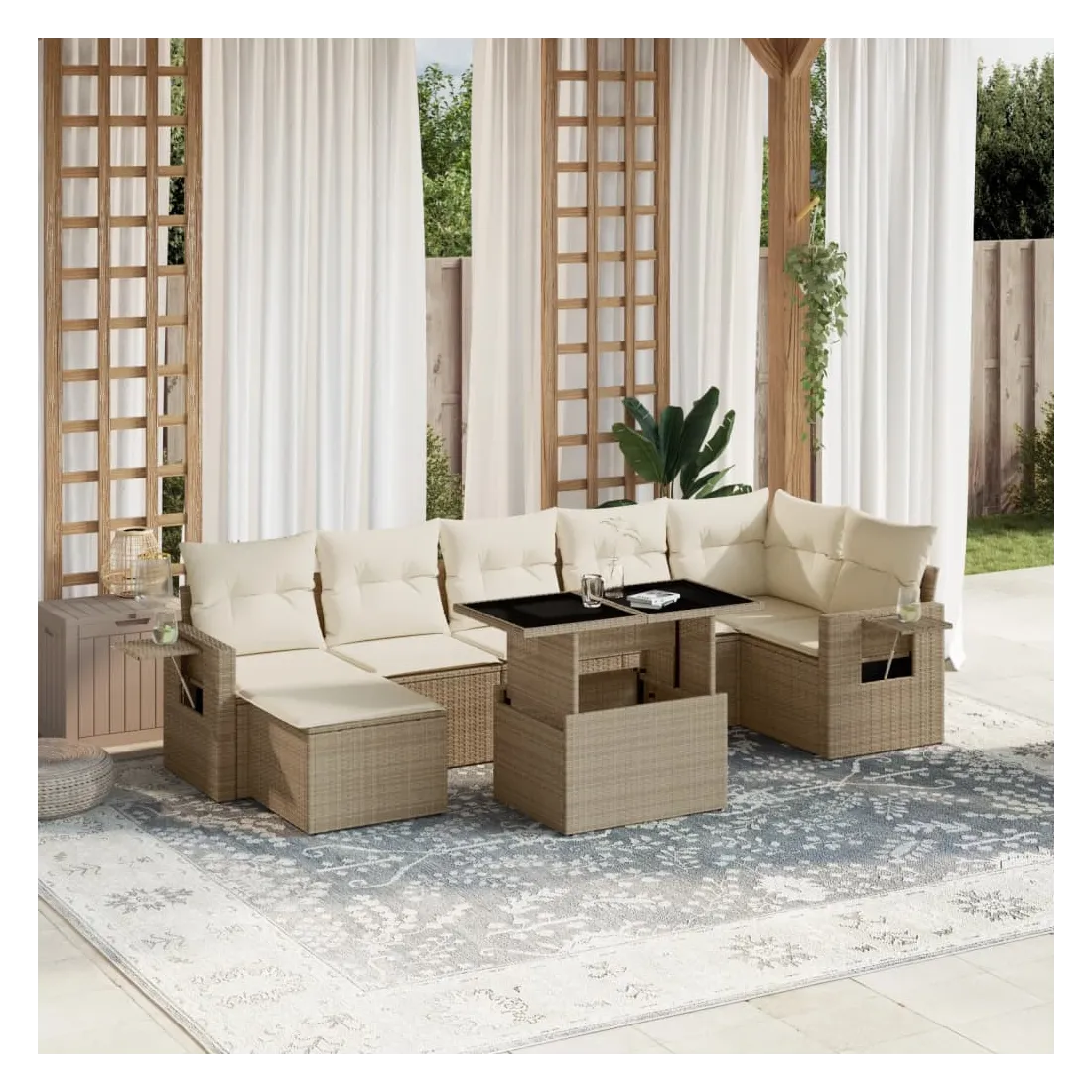 Cet ensemble de canapés de jardin est le complément parfait de votre arrière-cour, terrasse ou patio, offrant un espace confortable et accueillant pour discuter avec la famille et les amis ou simplement se détendre et profiter de l'extérieur. Matériau durable : la résine tressée, également connue sous le nom de poly rotin, est un matériau synthétique solide et nécessitant peu d'entretien qui ressemble au rotin naturel. Il est léger, facile à nettoyer et couramment utilisé pour les meubles d'extérieur en raison de sa durabilité et de ses propriétés de résistance aux intempéries.Dessus de table réglable : le dessus de table peut être soulevé pour rendre la table plus haute, ce qui transforme la table d'extérieur d'une table basse à une table de salle à manger. Elle est parfaite pour recevoir des invités ou prendre des repas à l'extérieur.Table d'appoint pratique : ce mobilier d'extérieur comprend des tables d'appoint pliables avec un ressort à gaz sur les accoudoirs, offrant des endroits pratiques pour garder vos essentiels à portée de main. Expérience d'assise confortable : ce mobilier d'extérieur, doté de coussins épais, offre une expérience d'assise confortable.Conception modulaire : cet ensemble de meubles d'extérieur a une conception modulaire, ce qui le rend complètement flexible et facile à déplacer, afin que vous puissiez créer un agencement de meubles d'extérieur personnalisé. Bon à savoir :Pour que vos meubles d'extérieur restent beaux, nous vous recommandons de les protéger avec une housse imperméable.