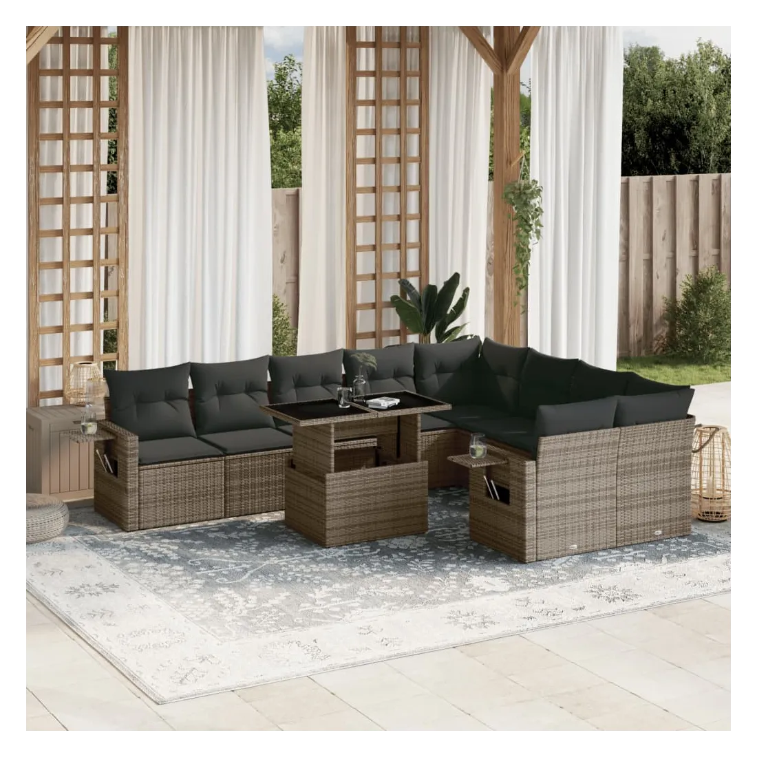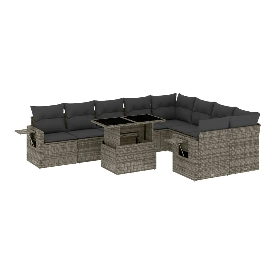 Salon de jardin avec coussins 10 pcs gris résine tressée