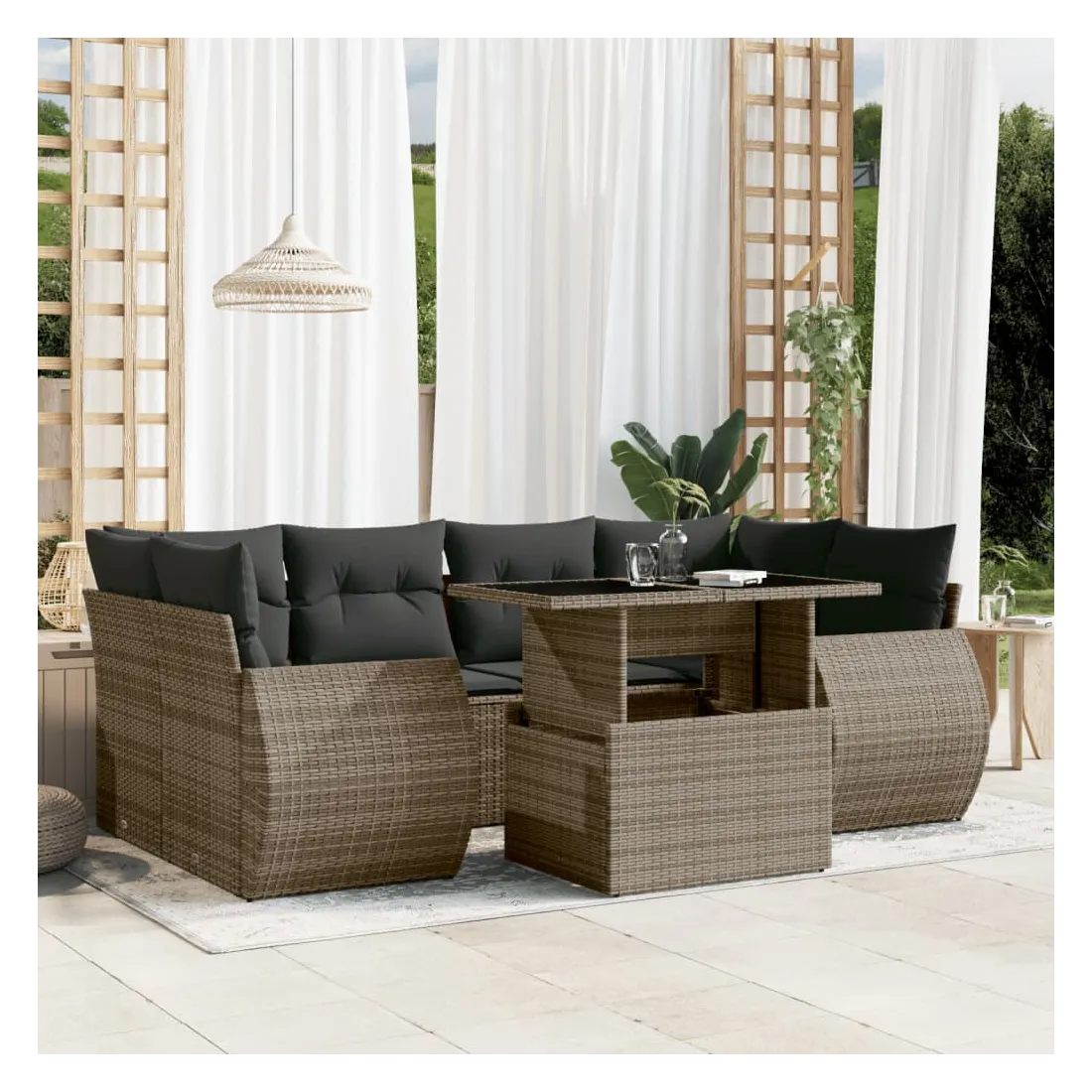 Cet ensemble de canapés de jardin est le complément parfait de votre arrière-cour, terrasse ou patio, offrant un espace confortable et accueillant pour discuter avec la famille et les amis ou simplement se détendre et profiter de l'extérieur. Matériau durable : la résine tressée, également connue sous le nom de poly rotin, est un matériau synthétique solide et nécessitant peu d'entretien qui ressemble au rotin naturel. Il est léger, facile à nettoyer et couramment utilisé pour les meubles d'extérieur en raison de sa durabilité et de ses propriétés de résistance aux intempéries.Dessus de table réglable : le dessus de table peut être soulevé pour rendre la table plus haute, ce qui transforme la table d'extérieur d'une table basse à une table de salle à manger. Elle est parfaite pour recevoir des invités ou prendre des repas à l'extérieur.Expérience d'assise confortable : ce mobilier d'extérieur, doté de coussins épais, offre une expérience d'assise confortable.Housse amovible et lavable : ces coussins de siège sont dotés de housses amovibles pour un lavage et un entretien faciles.Conception modulaire : cet ensemble de meubles d'extérieur a une conception modulaire, ce qui le rend complètement flexible et facile à déplacer, afin que vous puissiez créer un agencement de meubles d'extérieur personnalisé. Bon à savoir :Pour que vos meubles d'extérieur restent beaux, nous vous recommandons de les protéger avec une housse imperméable.