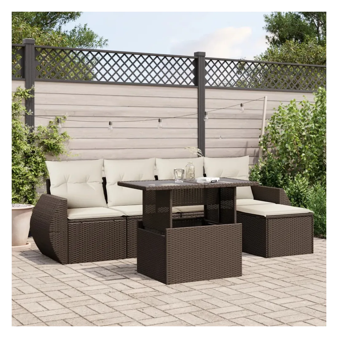 Cet ensemble de canapés de jardin est le complément parfait de votre arrière-cour, terrasse ou patio, offrant un espace confortable et accueillant pour discuter avec la famille et les amis ou simplement se détendre et profiter de l'extérieur. Matériau durable : la résine tressée, également connue sous le nom de poly rotin, est un matériau synthétique solide et nécessitant peu d'entretien qui ressemble au rotin naturel. Elle est légère, facile à nettoyer et couramment utilisée pour les meubles d'extérieur en raison de sa durabilité et de ses propriétés de résistance aux intempéries.Dessus de table réglable : le dessus de table peut être soulevé pour rendre la table plus haute, ce qui transforme la table d'extérieur d'une table basse à une table de salle à manger. Elle est parfaite pour recevoir des invités ou prendre des repas à l'extérieur.Expérience d'assise confortable : ce mobilier d'extérieur, doté de coussins épais, offre une expérience d'assise confortable.Housse amovible et lavable : ces coussins de siège sont dotés de housses amovibles pour un lavage et un entretien faciles.Conception modulaire : cet ensemble de meubles d'extérieur a une conception modulaire, ce qui le rend complètement flexible et facile à déplacer, afin que vous puissiez créer un agencement de meubles d'extérieur personnalisé. Bon à savoir :Pour que vos meubles d'extérieur restent beaux, nous vous recommandons de les protéger avec une housse imperméable.