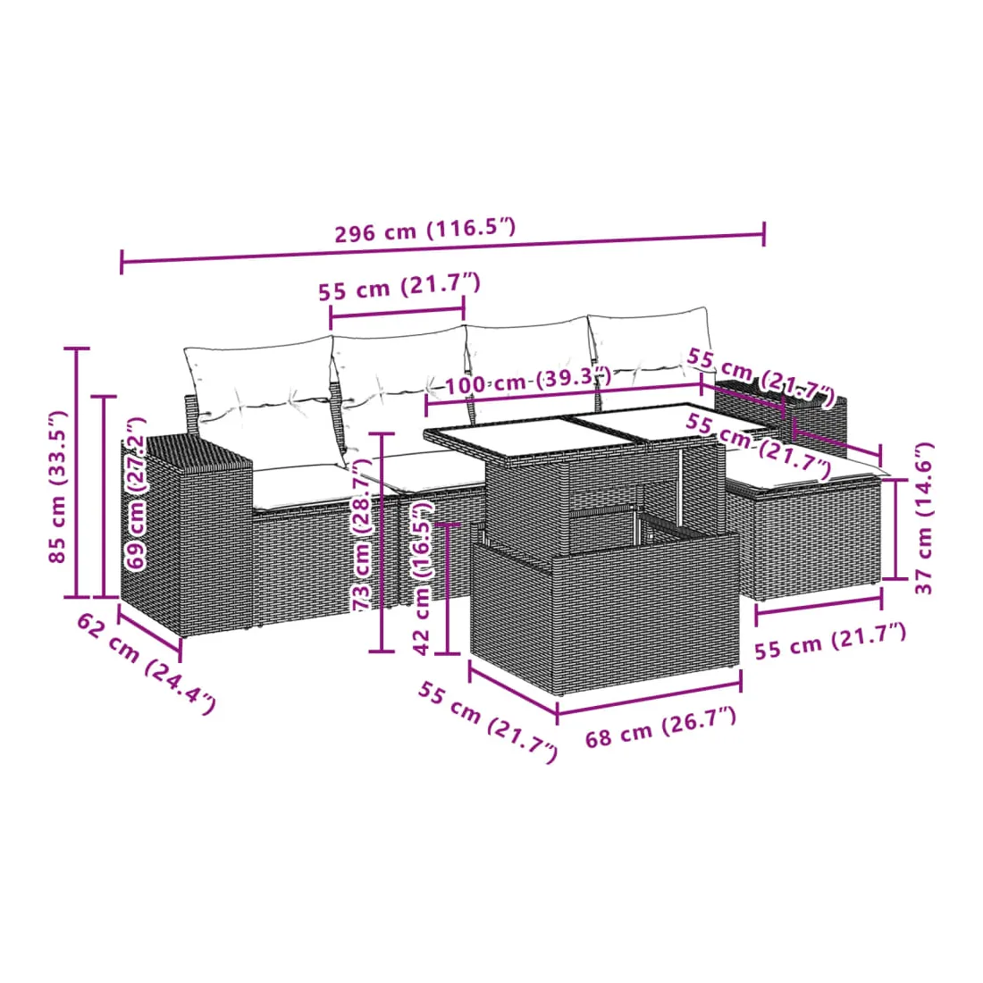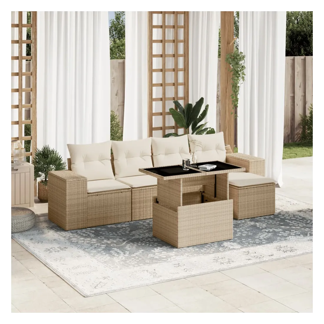 Cet ensemble de canapés de jardin est le complément parfait de votre arrière-cour, terrasse ou patio, offrant un espace confortable et accueillant pour discuter avec la famille et les amis ou simplement se détendre et profiter de l'extérieur. Matériau durable : la résine tressée, également connue sous le nom de poly rotin, est un matériau synthétique solide et nécessitant peu d'entretien qui ressemble au rotin naturel. Il est léger, facile à nettoyer et couramment utilisé pour les meubles d'extérieur en raison de sa durabilité et de ses propriétés de résistance aux intempéries.Dessus de table réglable : le dessus de table peut être soulevé pour rendre la table plus haute, ce qui transforme la table d'extérieur d'une table basse à une table de salle à manger. Elle est parfaite pour recevoir des invités ou prendre des repas à l'extérieur.Expérience d'assise confortable : ce mobilier d'extérieur, doté de coussins épais, offre une expérience d'assise confortable.Housse amovible et lavable : ces coussins de siège sont dotés de housses amovibles pour un lavage et un entretien faciles.Conception modulaire : cet ensemble de meubles d'extérieur a une conception modulaire, ce qui le rend complètement flexible et facile à déplacer, afin que vous puissiez créer un agencement de meubles d'extérieur personnalisé. Bon à savoir :Pour que vos meubles d'extérieur restent beaux, nous vous recommandons de les protéger avec une housse imperméable.